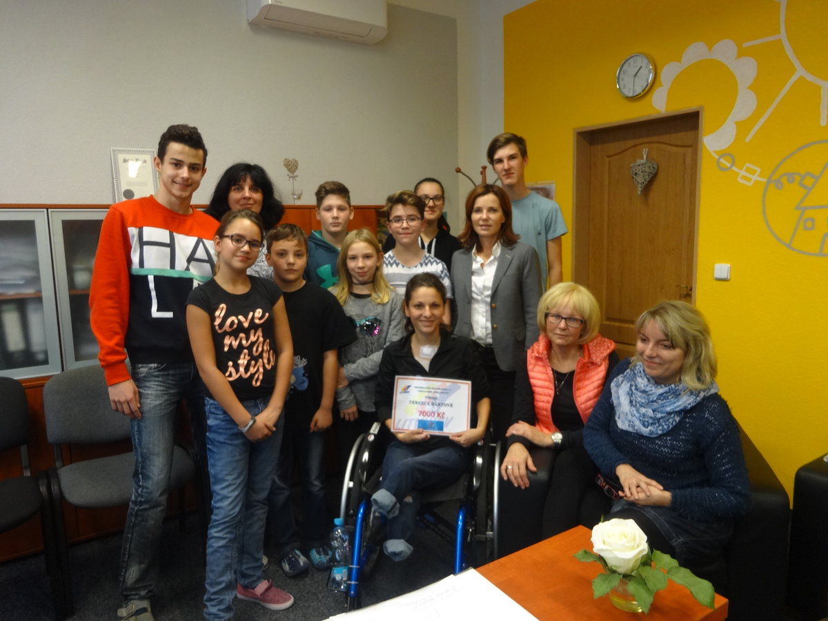 7 000 Kč dostala bývalá žákyně Terezka z Oseka, která se snaží po těžké nemoci vrátit do aktivního života a rodina našeho žáka Jirky, která přišla během požáru téměř o vše.