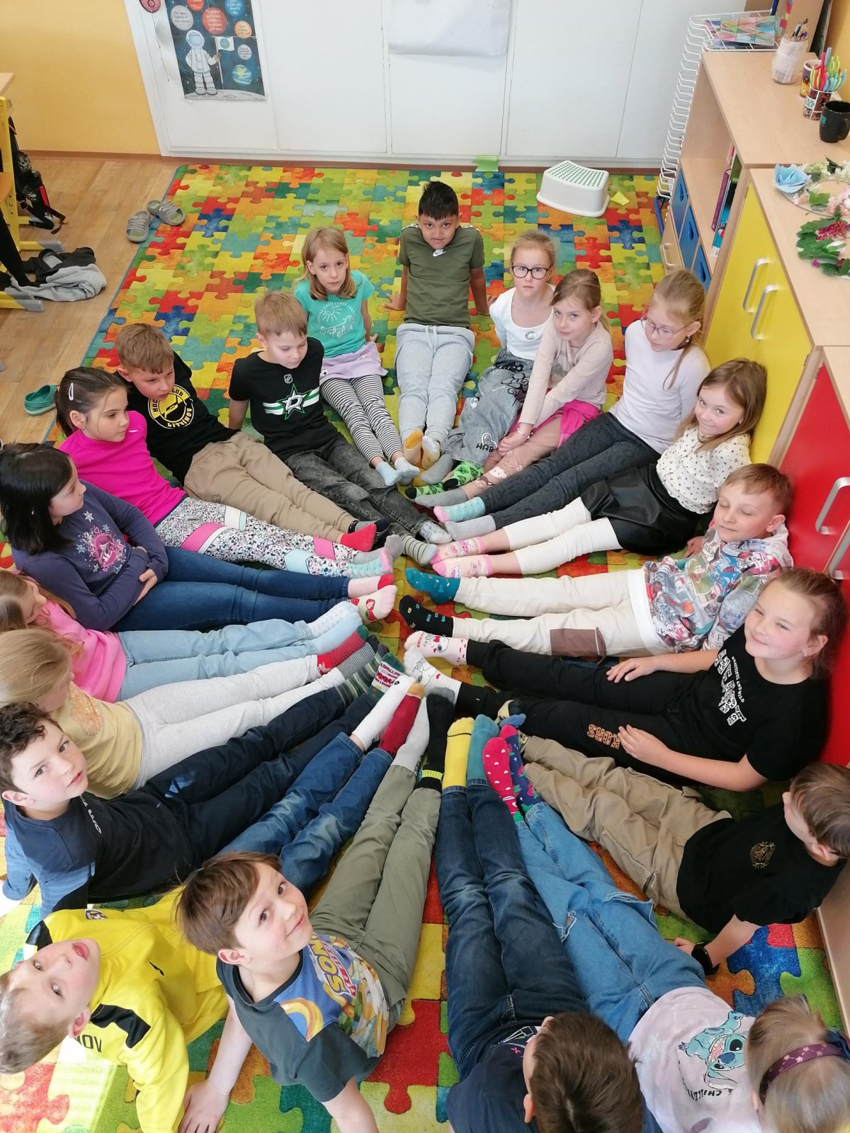 Ve třídě jsme se tento den věnovali informacím o Dawnově syndromu.