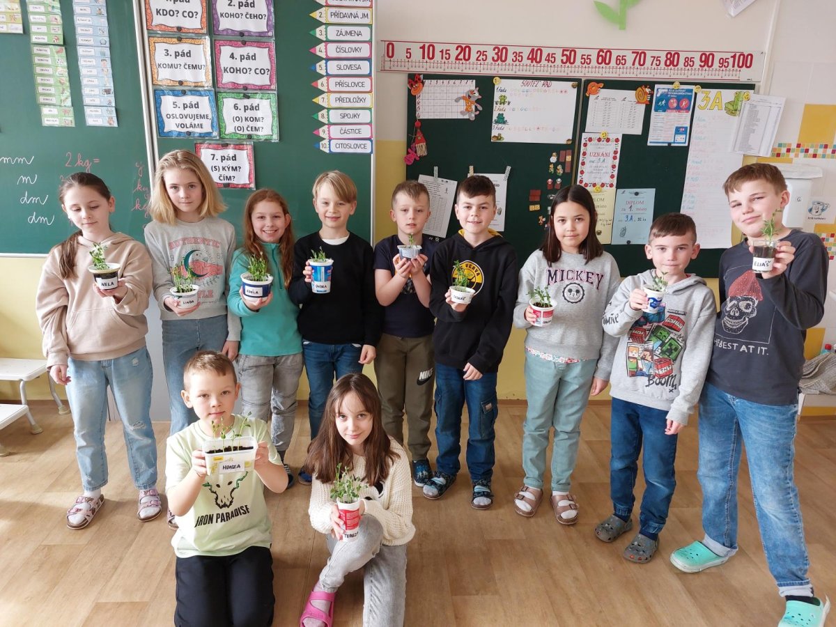 Na jaro jsme se moc těšili. Zasadili jsme si a pozorovali, jak nám rostlinky pěkně rostou a vyrobili jsme si plechovku, do které také můžeme sázet.