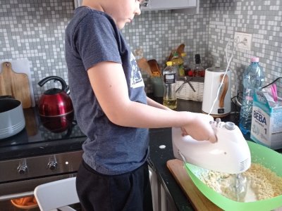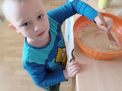 V rámci pracovních činností jsme se pustili do pečení bábovky a musím konstatovat, že to bylo velmi zdařilé pečení.