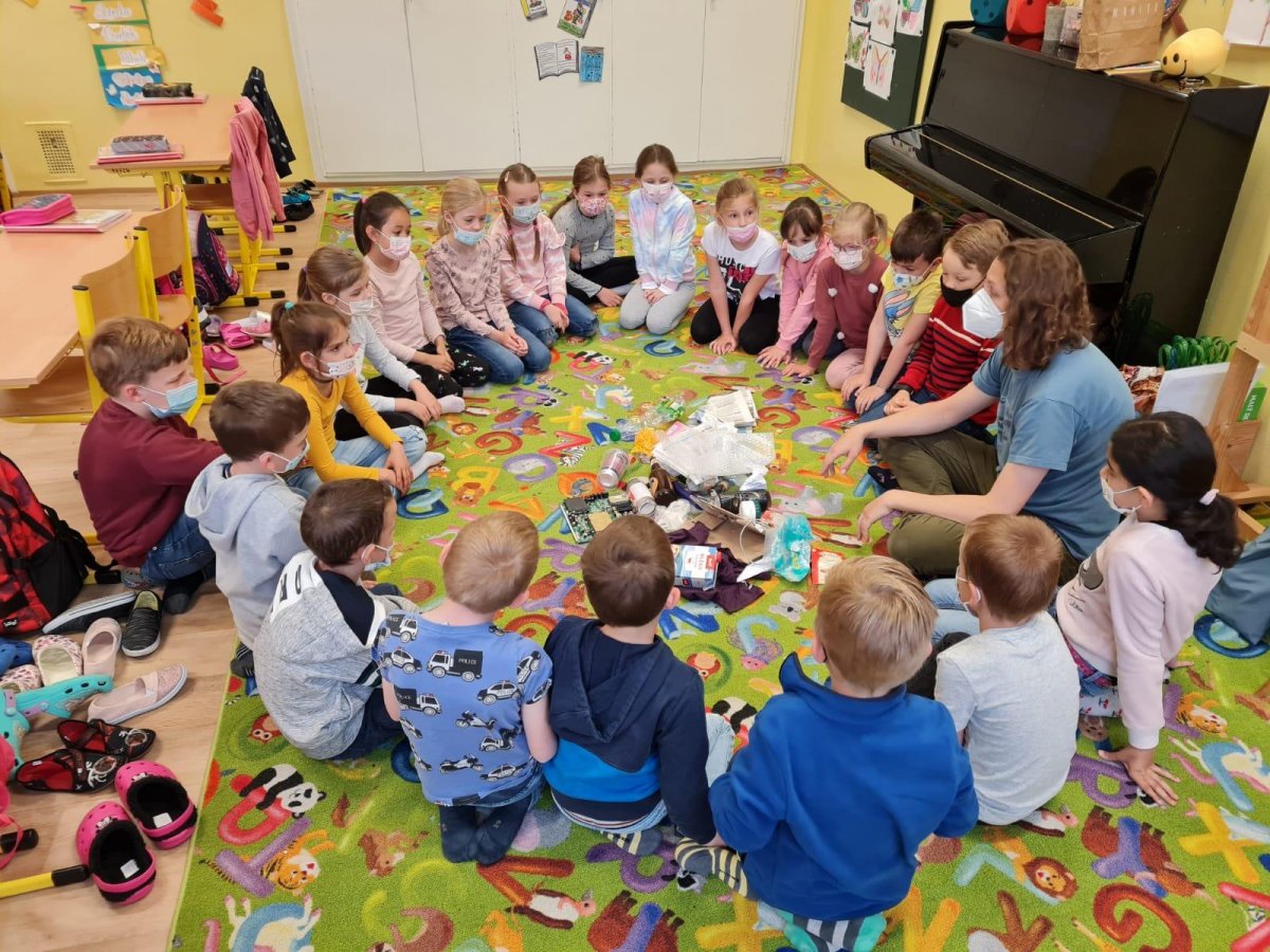 Zúčastnili jsme se přednášky o třídění odpadu. Děti přednáška bavila, výborně se zapojily a ukázaly, co všechno o odpadech ví a jak je správně třídit.