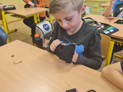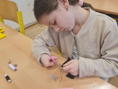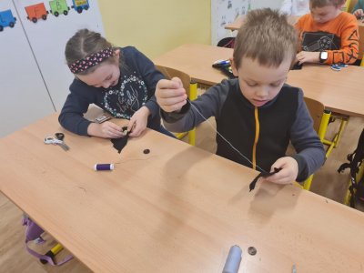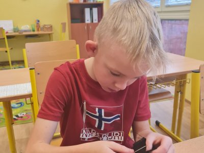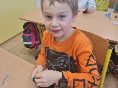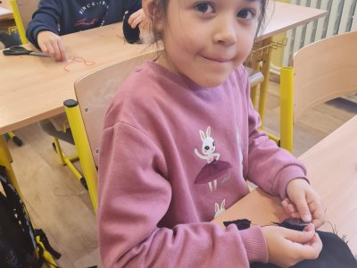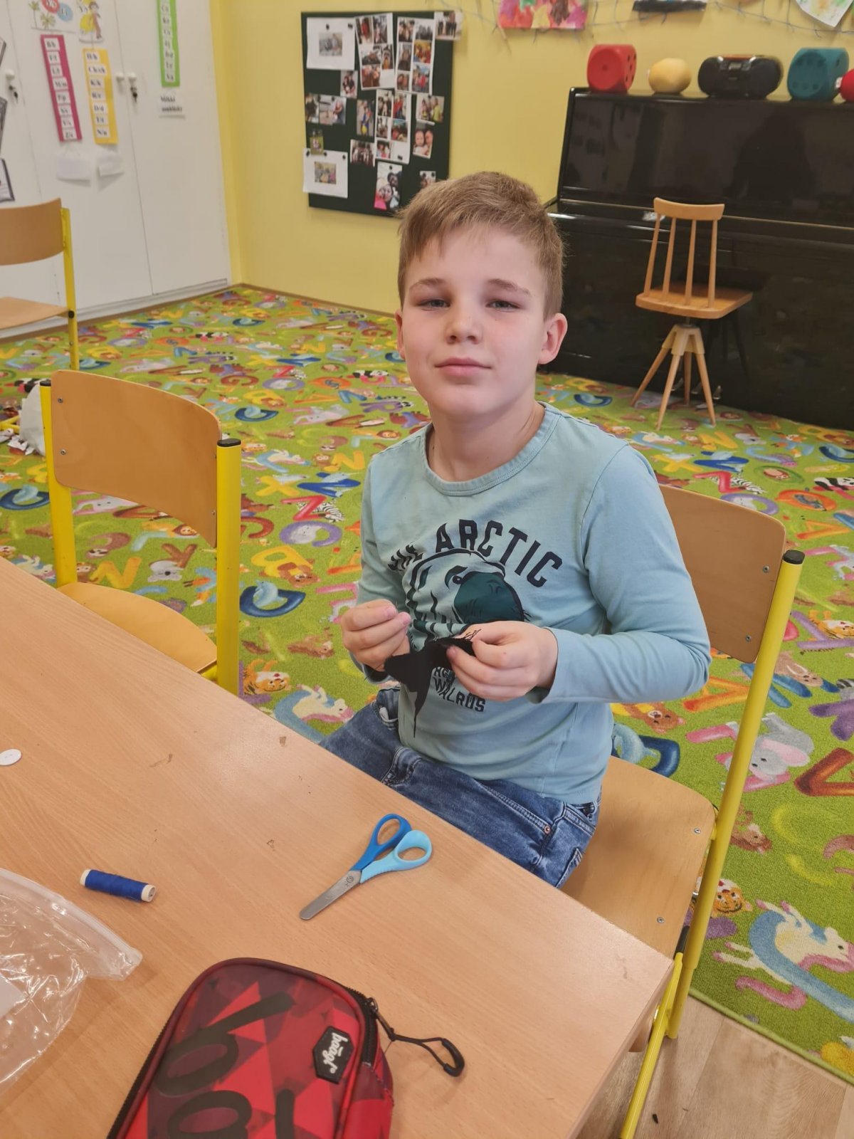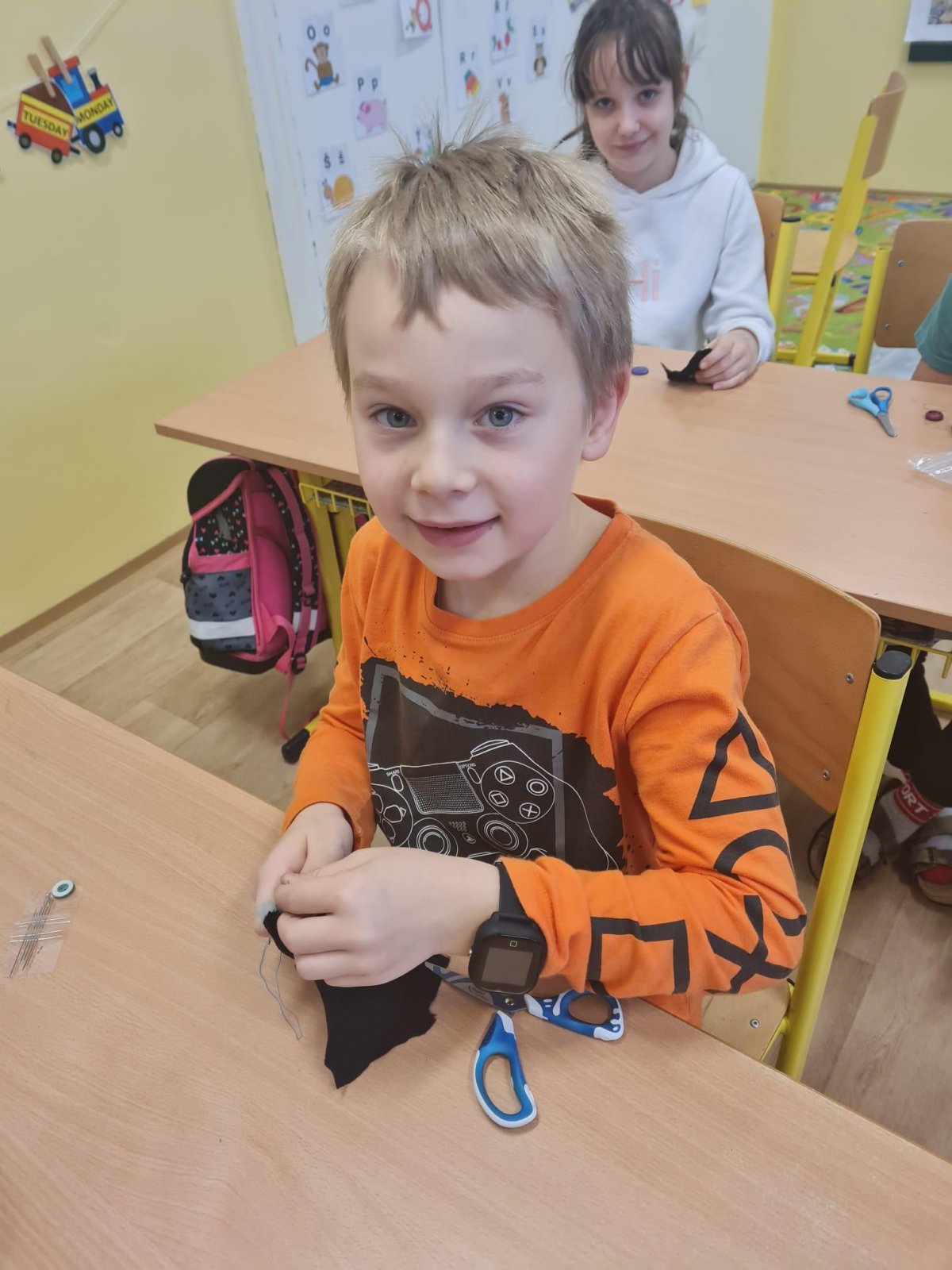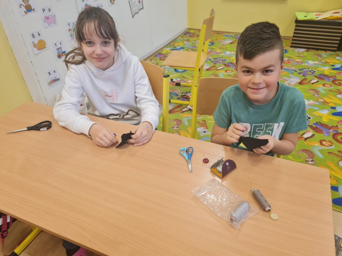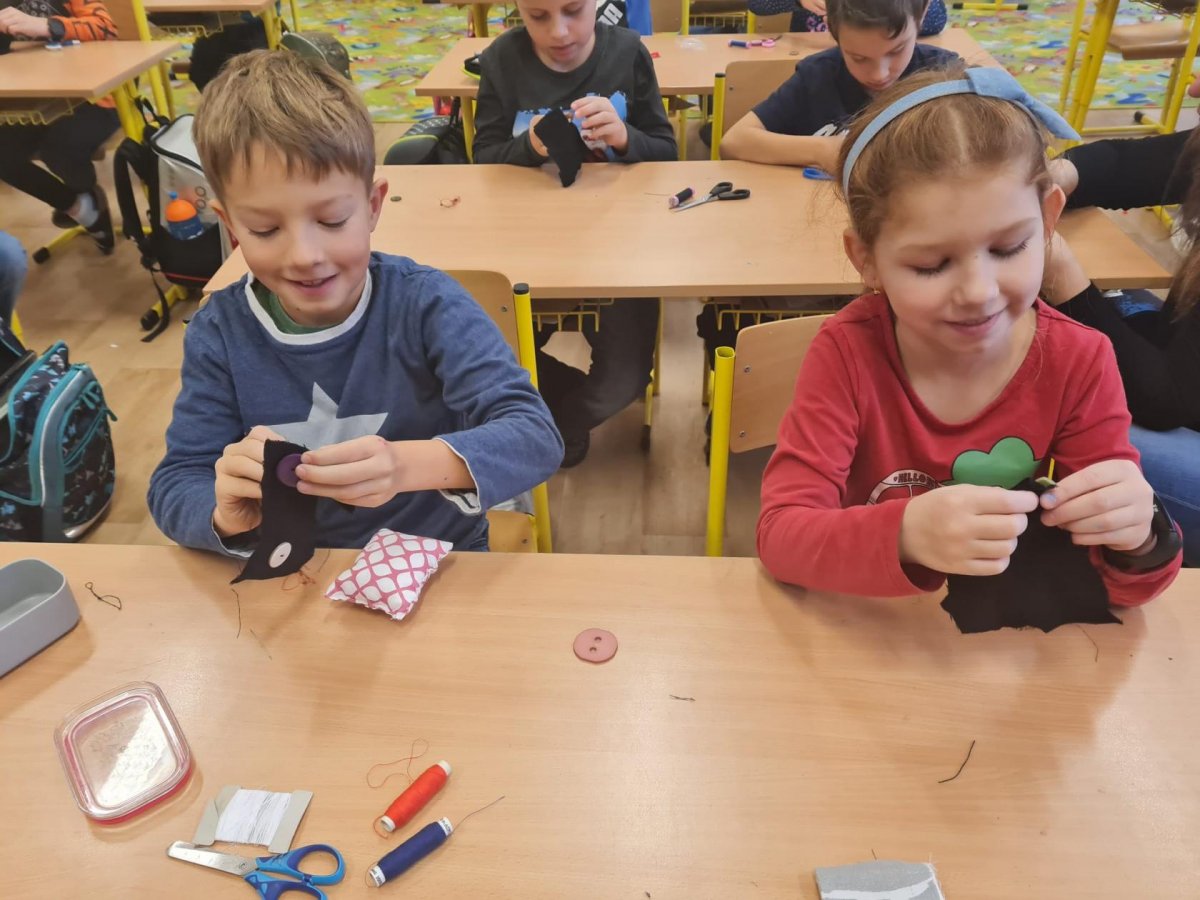 Dnes jsme se odvážně pustili do přišívání knoflíků. Došlo na pár propíchnutých prstíků, ale žádná Růženka neusnula. Myslím, že první seznámení s jehlou dopadlo na výbornou.