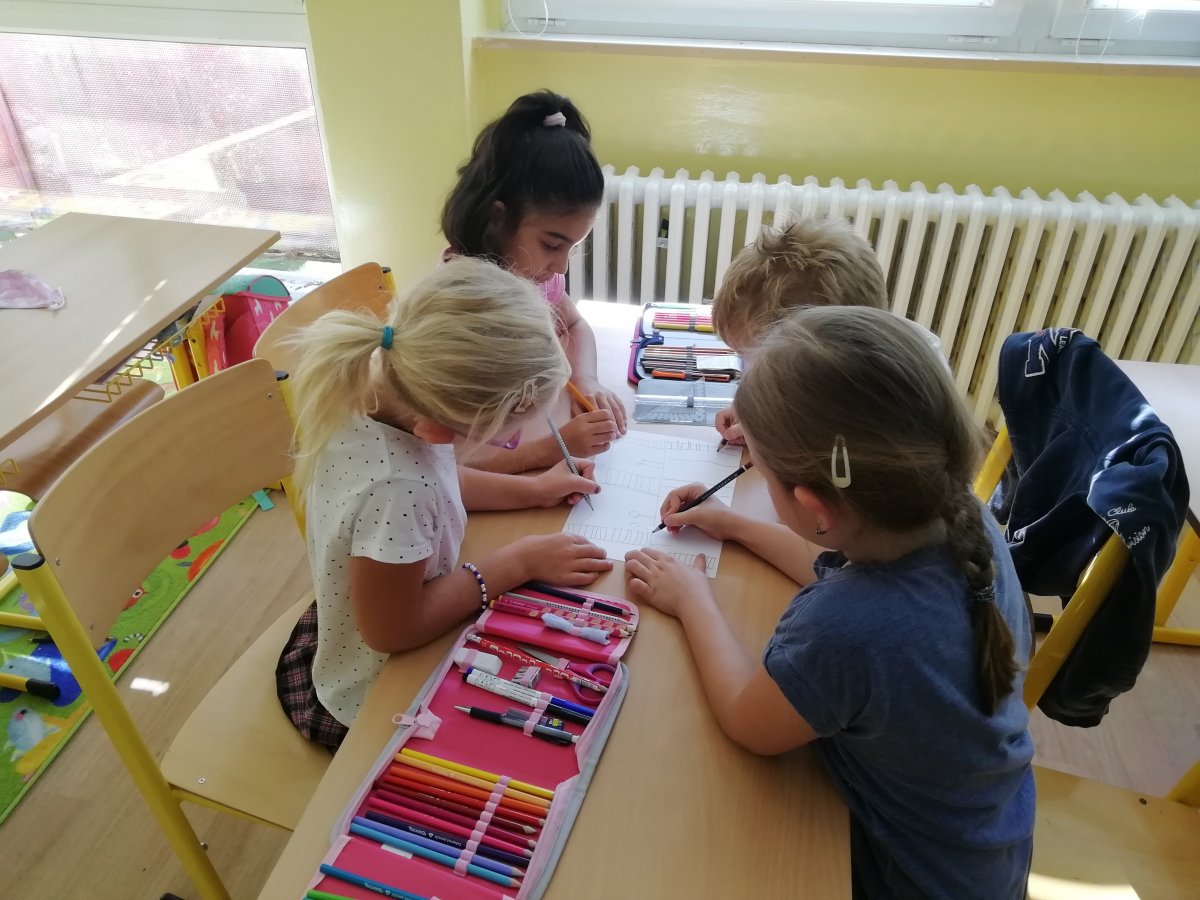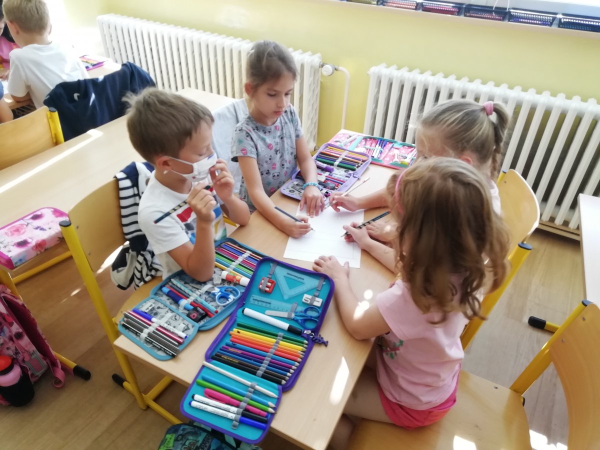 Jsme žáky 1. třídy jenom měsíc a už zvládáme pracovat ve skupině.