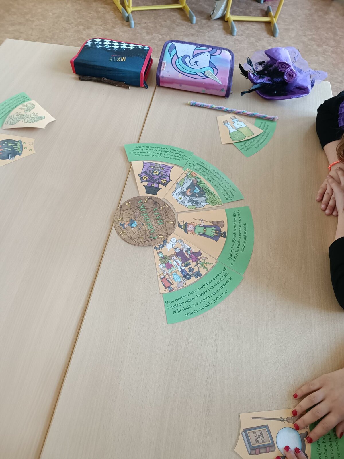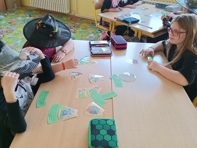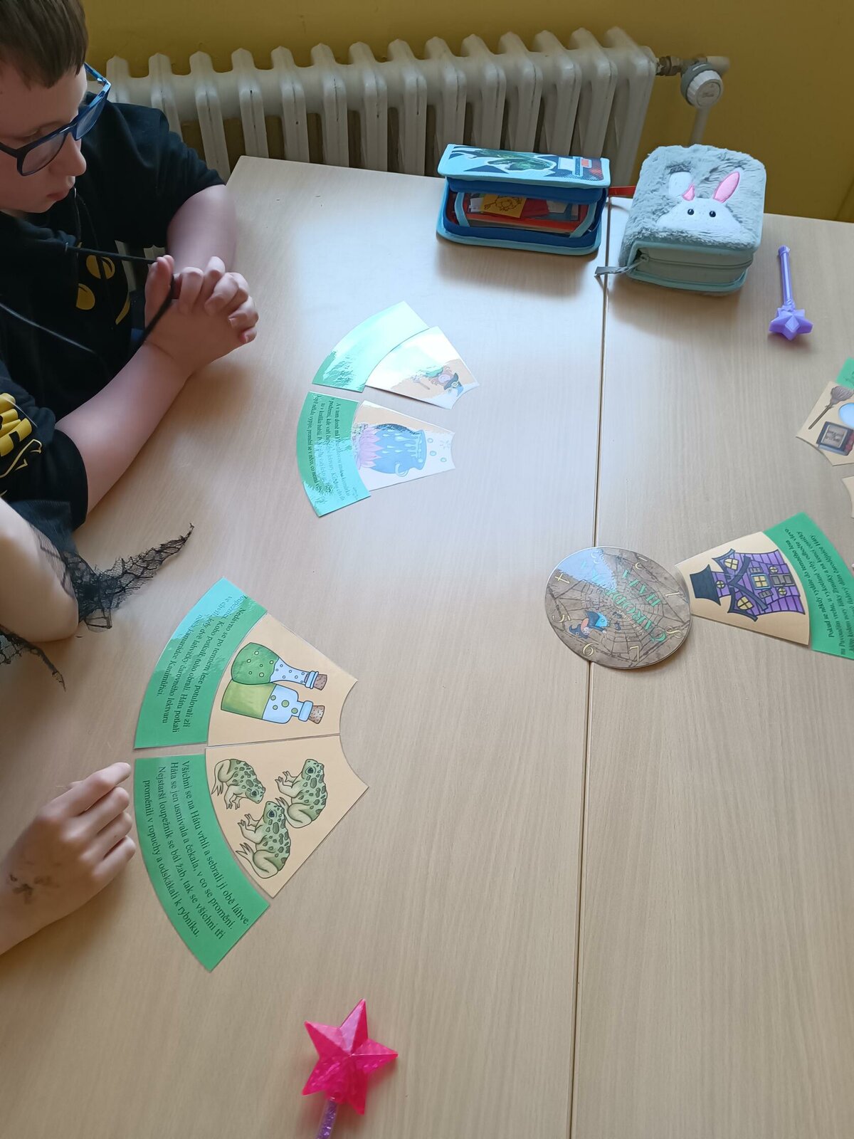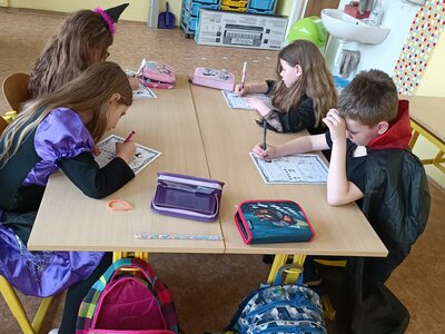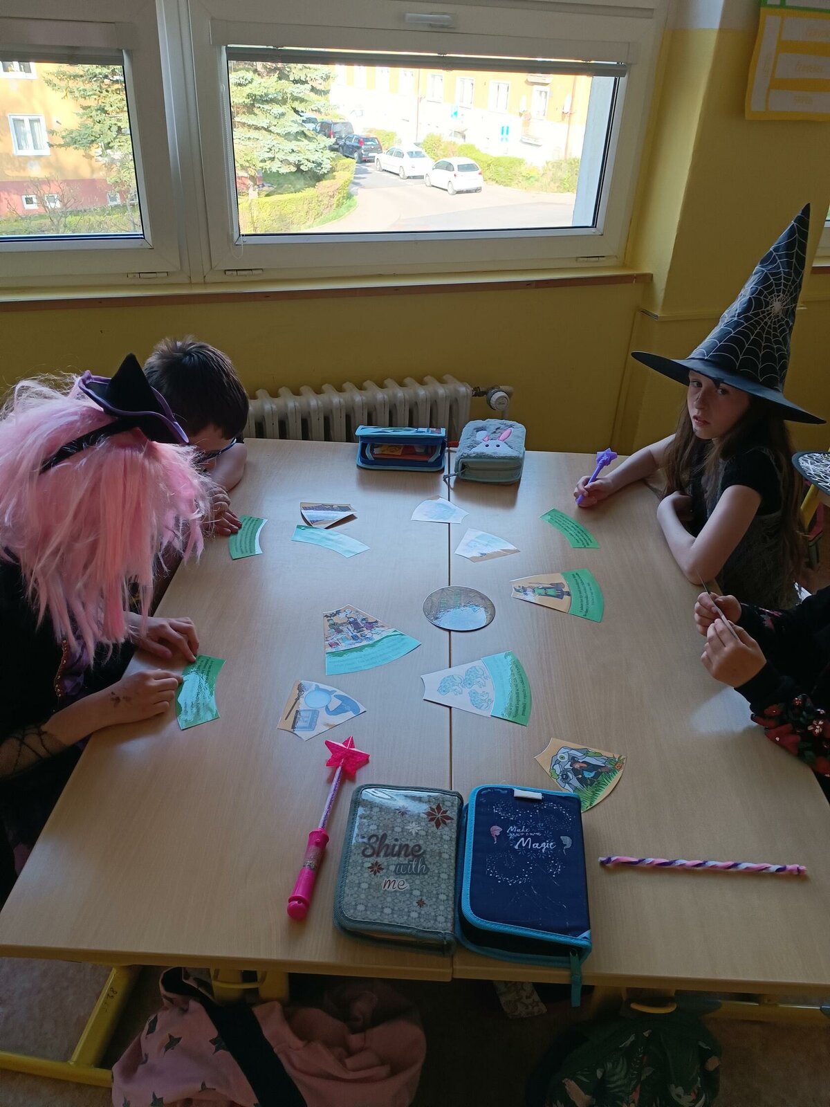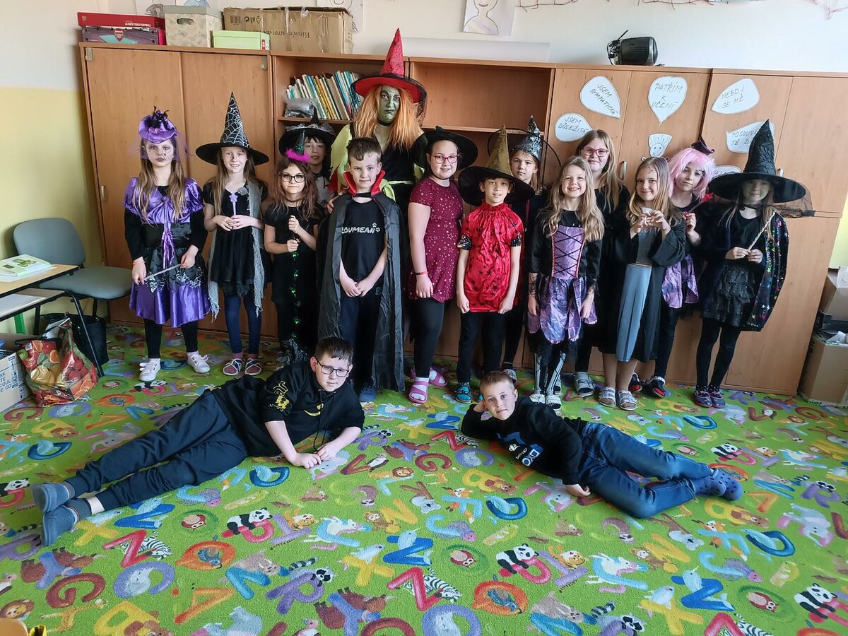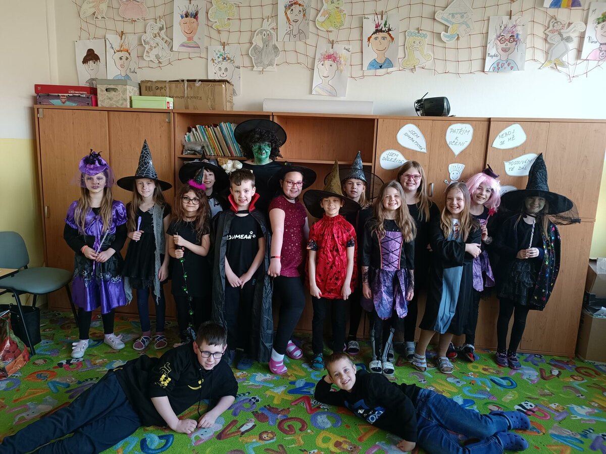 Dnes 29. 4. 2022 jsme místo klasického vyučování měli Čarodějnickou školu. Jako hlavní čarodějnice musím mé malé čarodějky a čaroděje moc pochválit. V matematice jsme zjistili, kolik máme koček a havranů, kolik přísad patří do lektvaru, a dokonce pochytali myšky, které ve třídě nechceme. V českém jazyce vytvořili pohádkový příběh o čarodějce Hátě a místo klasického čtení jsme hledali jméno naší nové kamarádky. Přijít na její jméno nebylo nic jednoduchého, jelikož jsme museli rozluštit devět úkolů. Odměnou nám však byly dobroty a čarodějnický průkaz. Nakonec jsme si čarodějnici a čaroděje nakreslili.