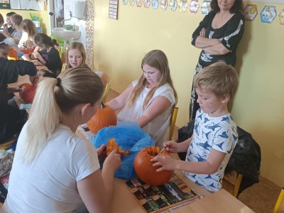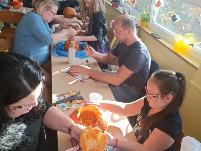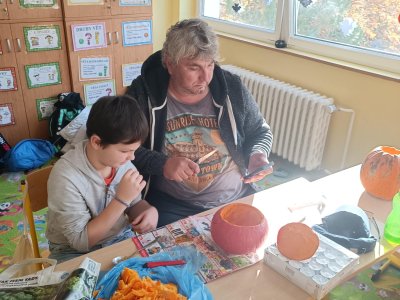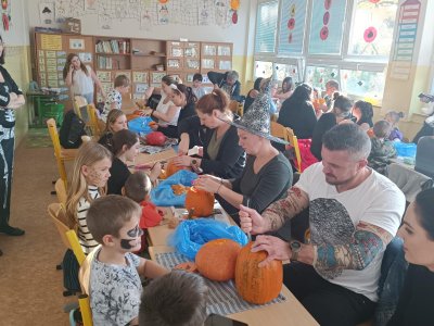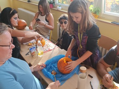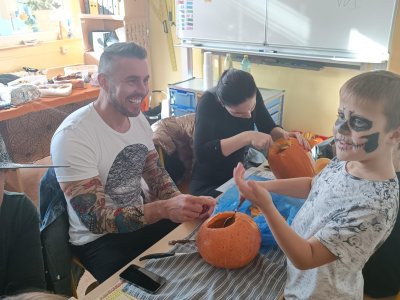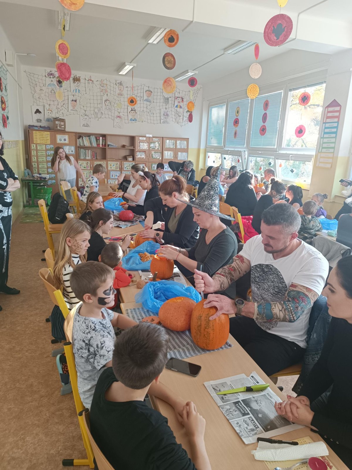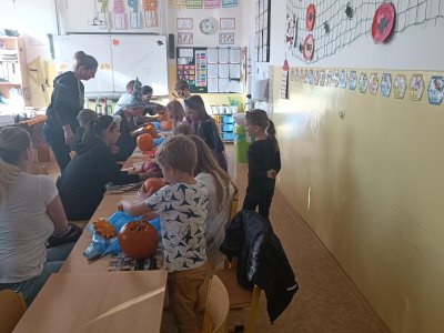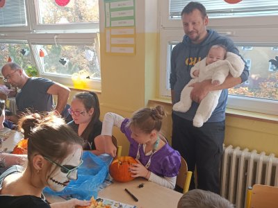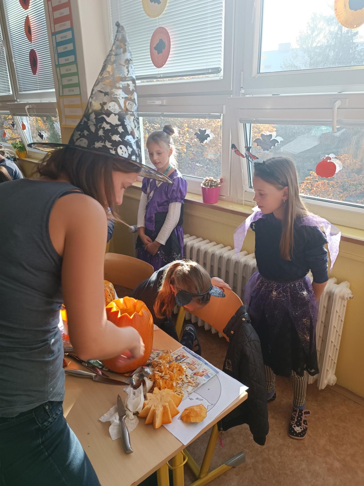 Jen jednou v roce je čas svátku Halloween typický pro strašidelné kostýmy a jeho tradičním znakem jsou vyřezané dýně se svíčkou uvnitř. Poslední říjnový den tohoto svátku jsme využili k posezení i u nás ve třídě.