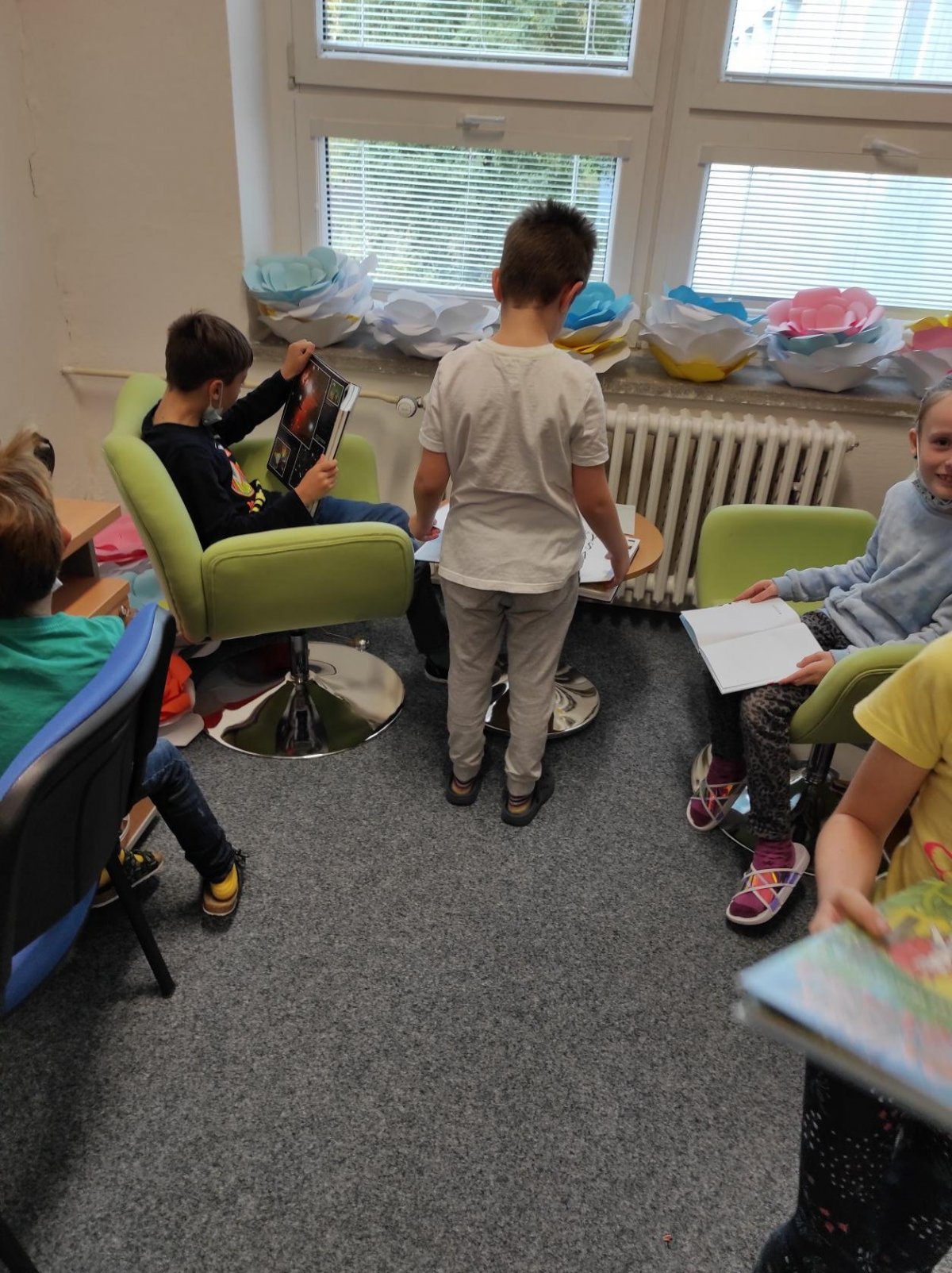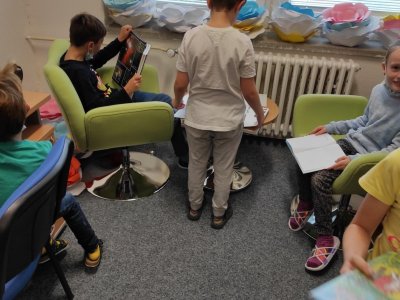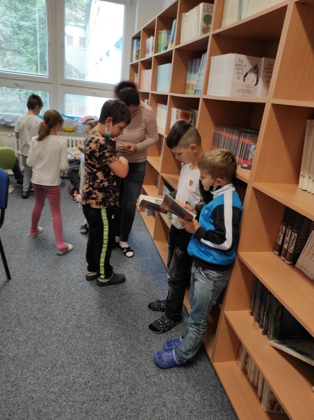V pátek 15.10. jsme společně navštívili školní knihovnu. Žáci se dozvěděli, jak jsou zde knihy řazeny, jaké žánry knihovna nabízí, jak s knihami zacházet a které se nám nejvíce líbí. Následně si žáci mohli knihy prohlédnout. Na závěr jsme si vybrali mimočítankovou četbu - O pejskovi a kočičce, na kterou se již velice těšíme. Všem se v knihovně moc líbilo a jistě ji znovu navštívíme.