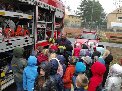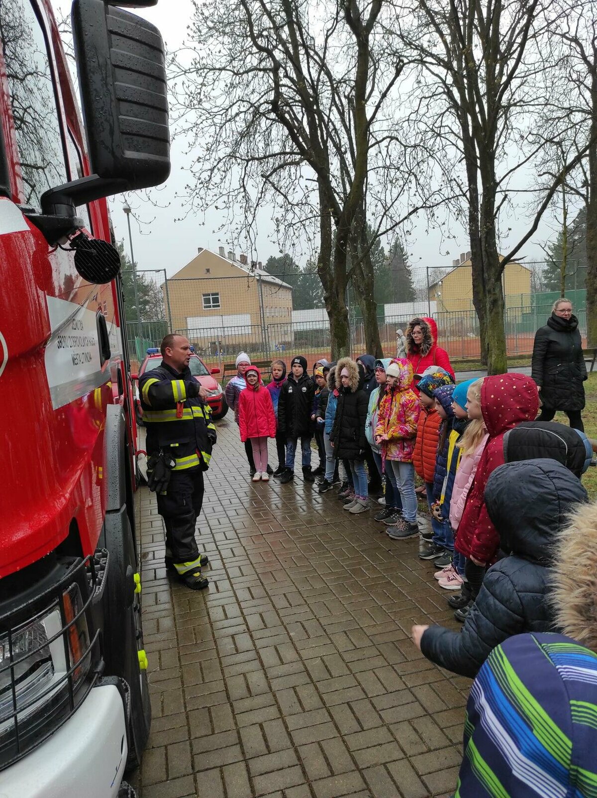 V průběhu první vyučovací hodiny žáci poznávali dopravní značky, přiřazovali správné názvy. Rozhodovali o správnosti chování v dopravních prostředcích, na chodníku a na silnici. V průběhu druhé hodiny se seznámili za pomoci profesionálního hasiče s povinnostmi hasiče, jeho prací, s hasičským autem a jeho vybavením. Výklad byl velmi zajímavý a žáci měli možnost vyzkoušet si, jak těžká je hasičská přilba, dýchací přístroj, hadice a další vybavení. Po návratu se pustili do dopravního kvízu, jehož otázky byly rozmístěné po chodbě. V průběhu třetí hodiny dokončili pracovní listy a nakreslili hasičské auto. Někteří dokonce s hasičem.
