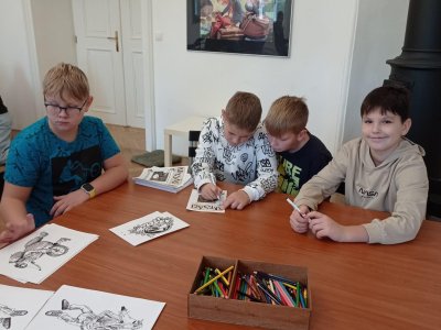 V říjnu jsme navštívili zámek v Litvínově, kde jsme viděli skutečné panely s kulisami a loutkami, ve kterých se večerníček vyráběl. Kromě toho na zámku připravili i expozici, ve které se děti formou hry dozvěděly leccos o třídění odpadu.
