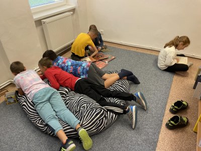 Projekt dopravní výchova, návštěva knihovny, hry na hřišti, exurse v úpravně vody Meziboří, prohlídka města.