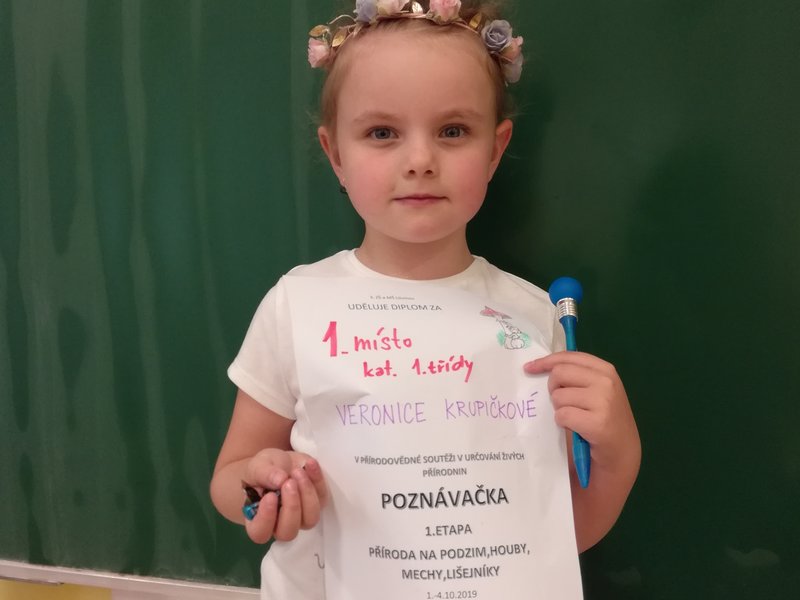 Velká gratulace a poděkování patří Verunce Krupičkové, která obsadila první místo v přírodovědné poznávačce - kategorie 1. tříd.