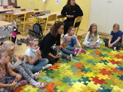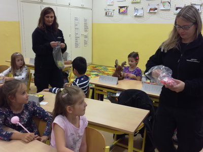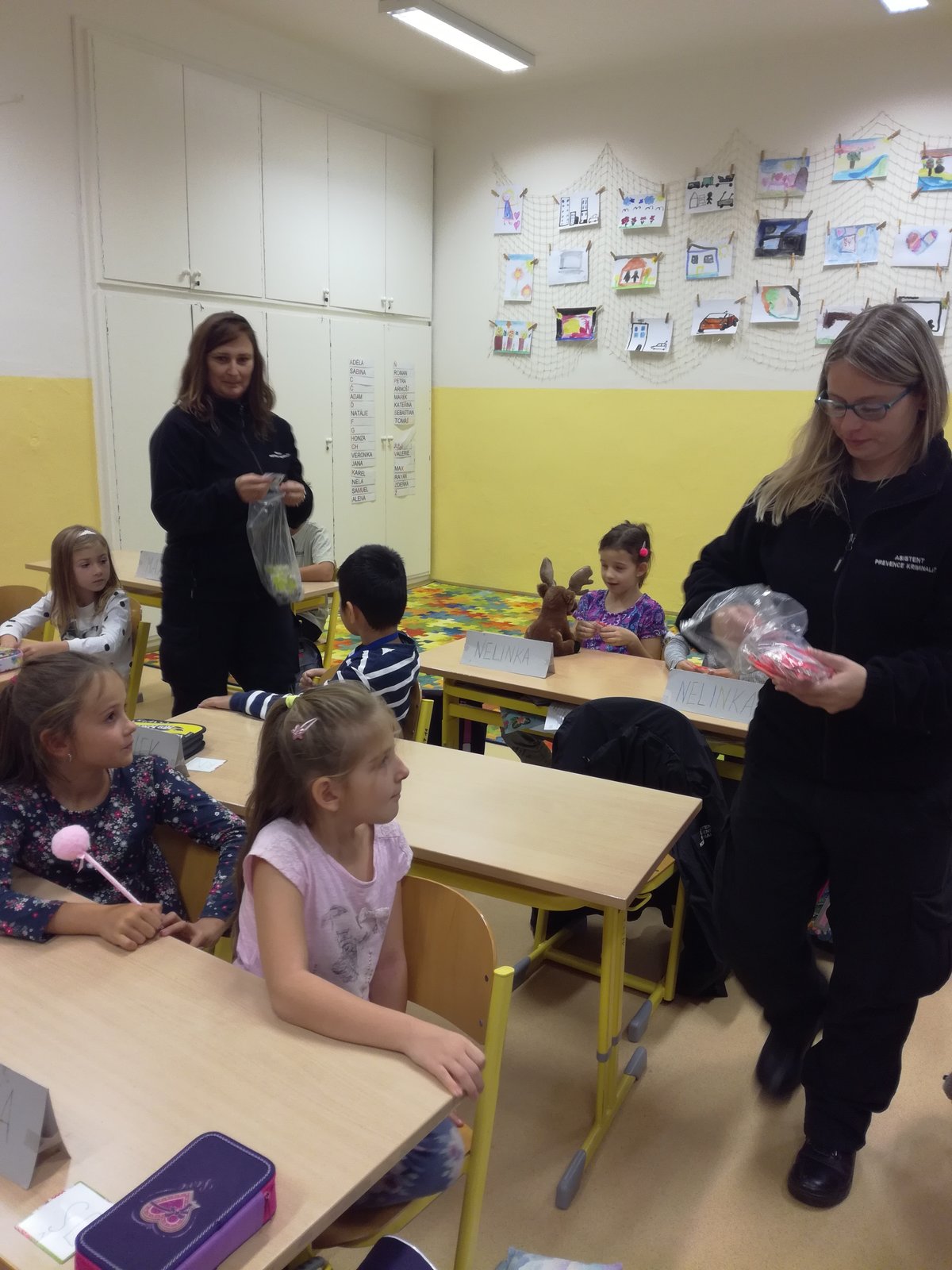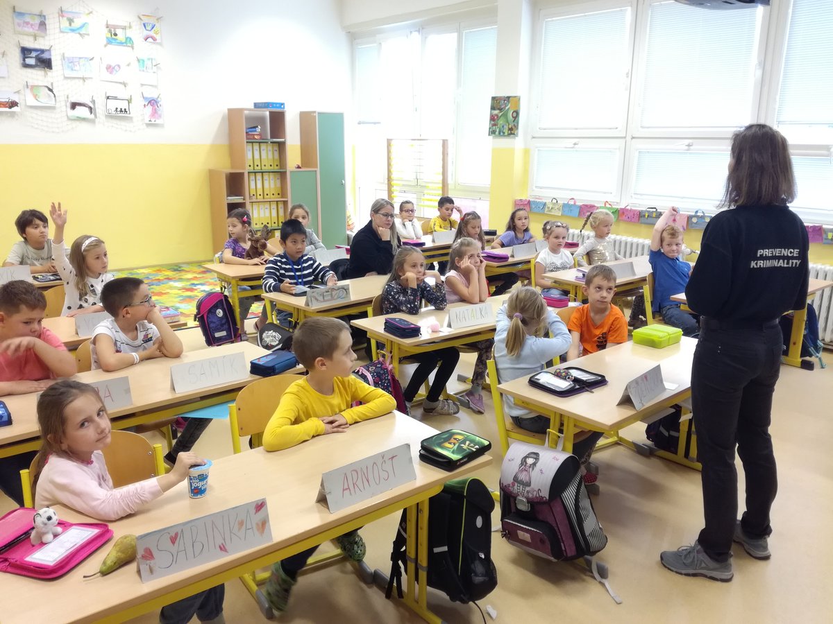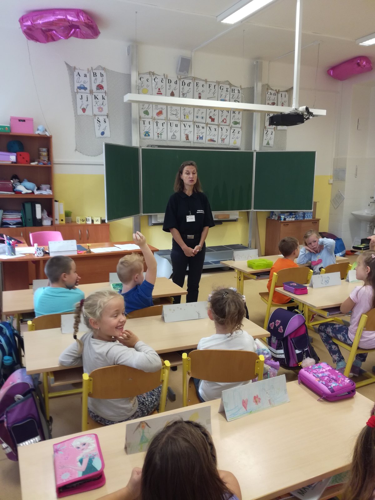 Ve středu 16. 9. měly děti besedu s preventistkou Městské policie v Litvínově paní Hejčovou. Přítomny byly i asistentky kriminality, které děti potkávají v okolí školy.