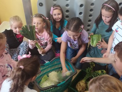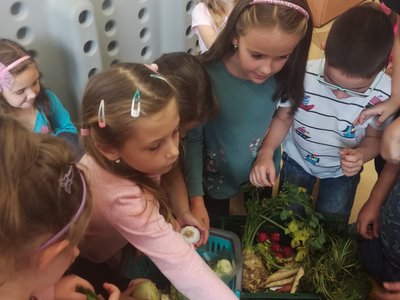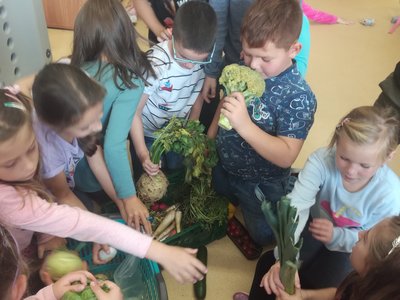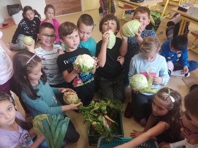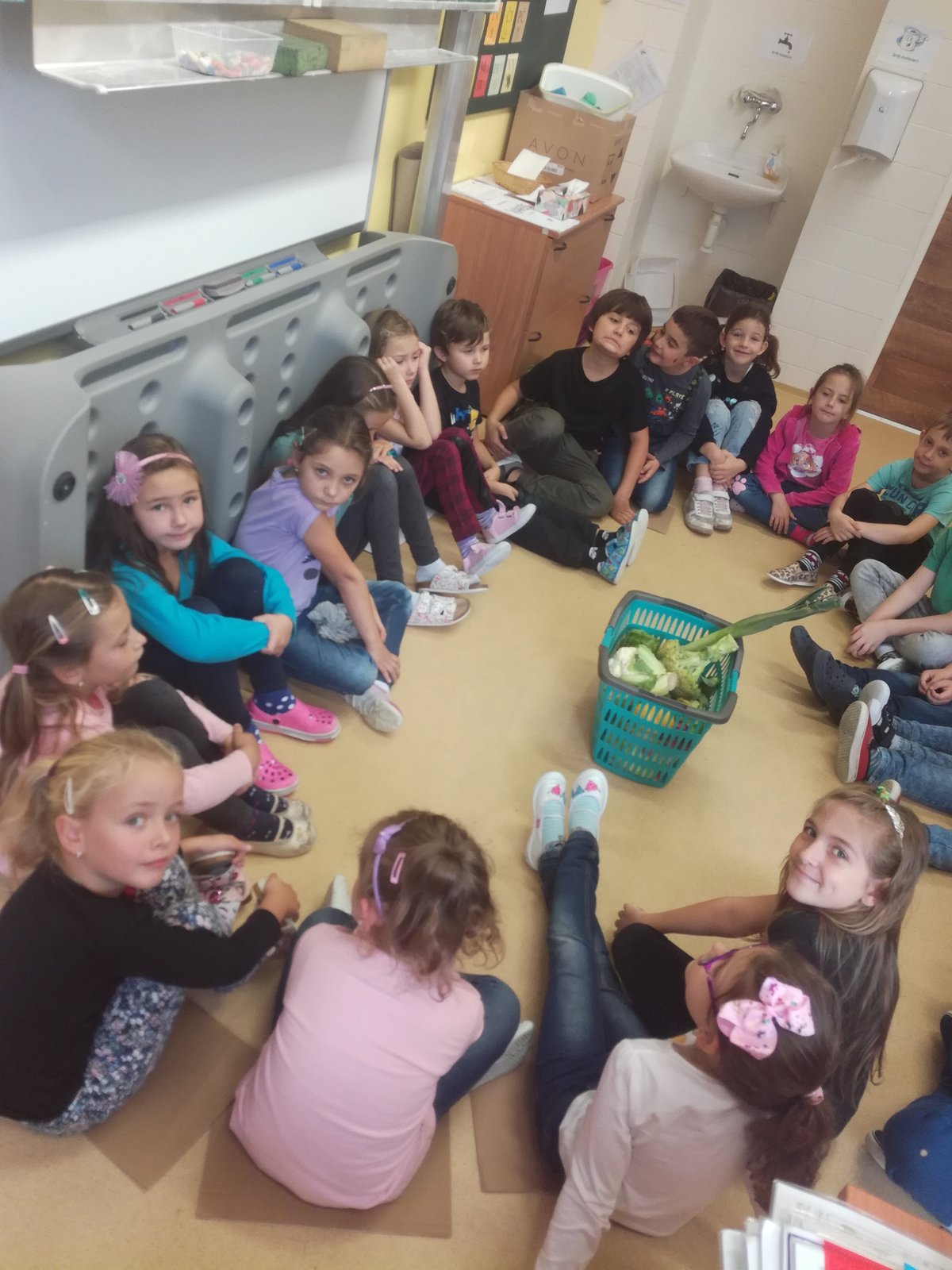PRV - Jaká zelenina roste na zahrádce? Děti měly možnost zeleninu si prohlédnout, potěžkat, očichat a některou i ochutnat :-)