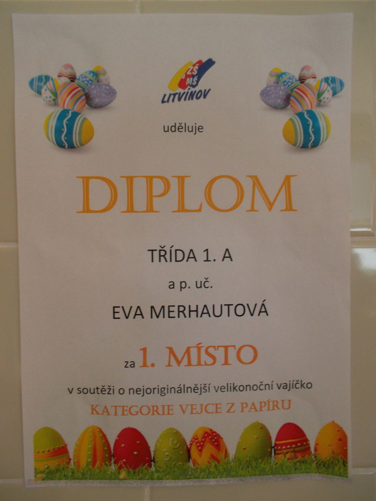 1.MÍSTO V SOUTĚŽI O VELIKONOČNÍ VAJÍČKO
