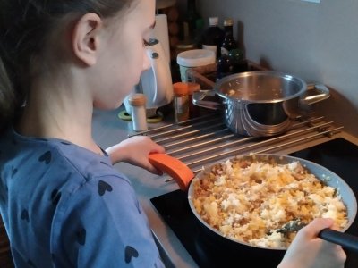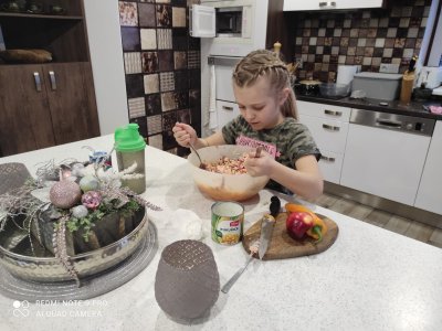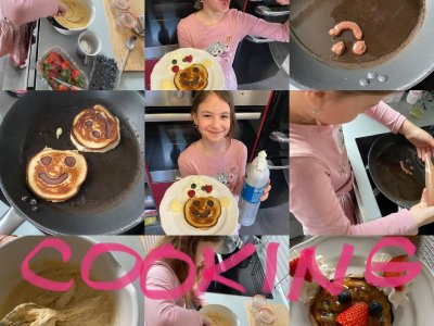 V distanční výuce se nenudíme. Vymýšlýme a plníme různé výzvy. Týdenní sportovní výzva - panák a dřepy, koordinační cvičení "Semafor"; vaření pro druhé, minutový obrázek; kreslili jsme koloběh vody v přírodě.