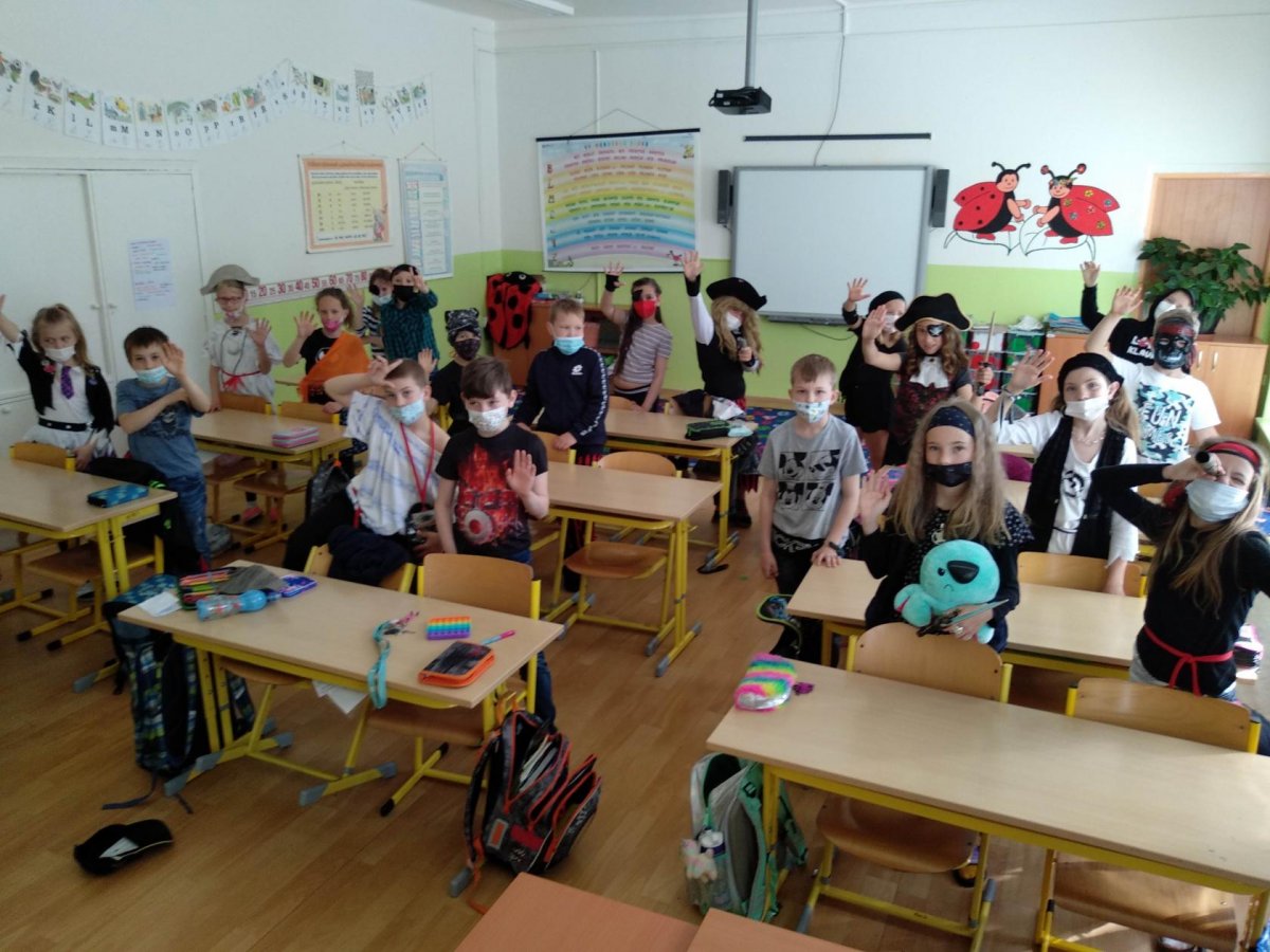 1. 6. Den dětí, jsme si náležitě užili. Ze třídy se stala posádka pirátů, kteří prokázali velmi dobré znalosti v počtech, psaní, čtení, logickém uvažování, ale především ve skupinové spolupráci. Čas neúprosně utíkal, a tak jsme v pirátském poznávání pokračovali i druhý den, kdy jsme se seznámili s některými živočichy Karibiku a nakreslili mapu k pokladu.