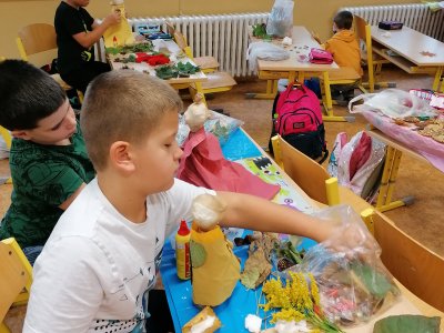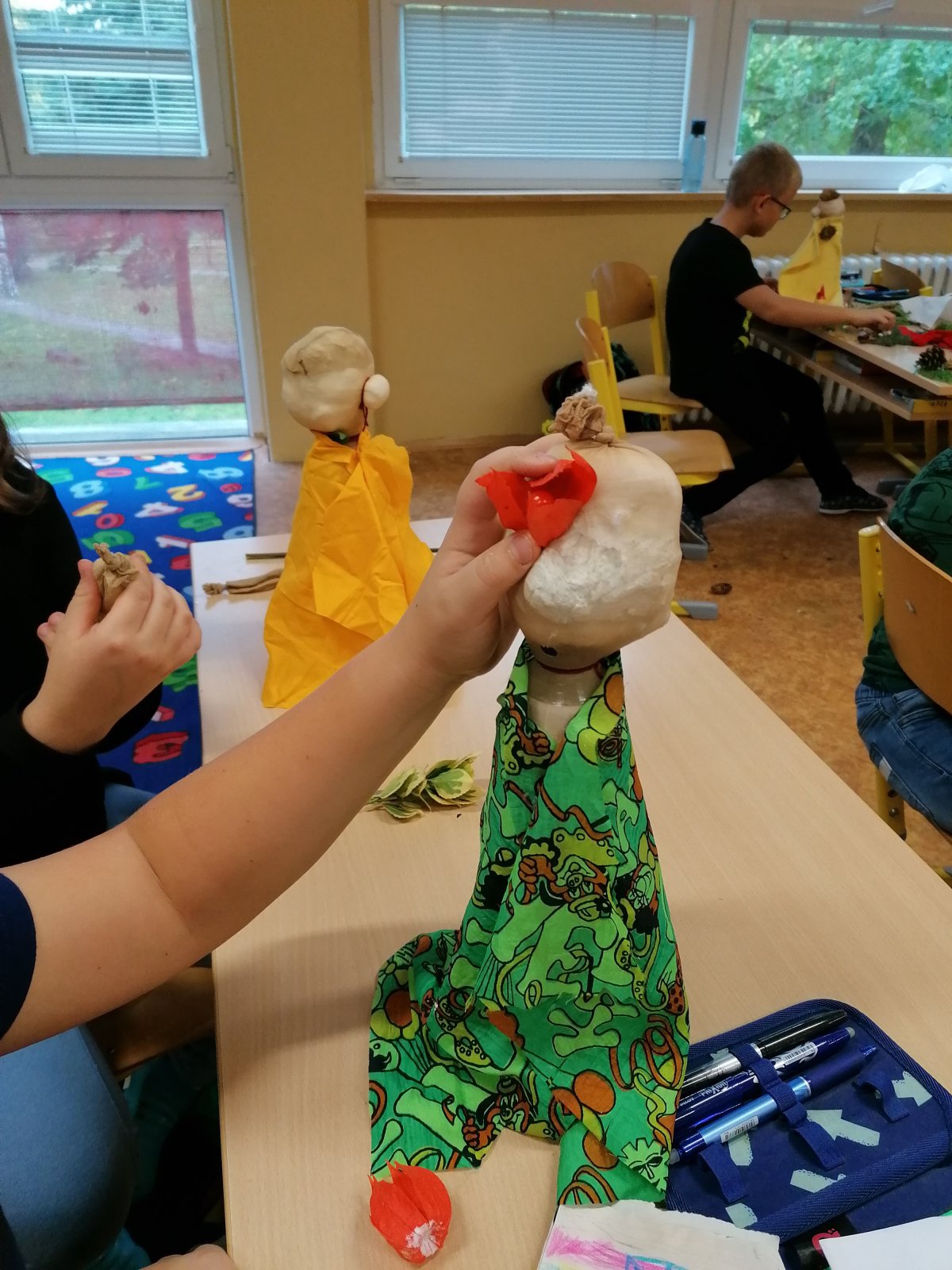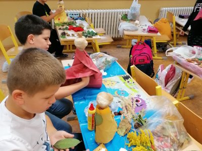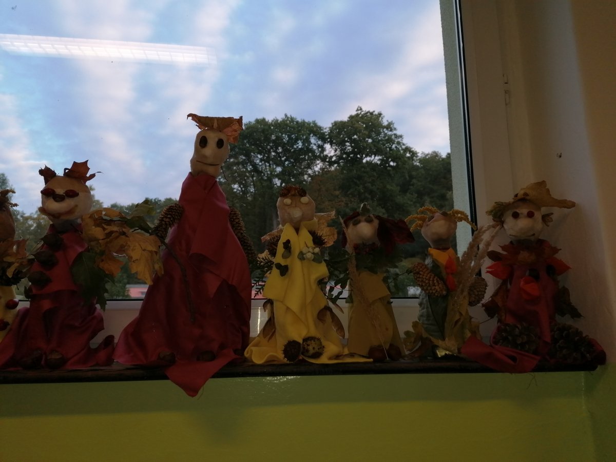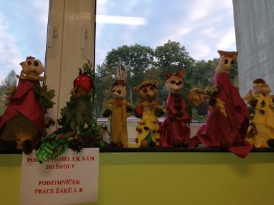 Naše třída jich pár vyrobila. Musím je moc pochválit, opravdu se jim podzimní skřítci povedli a nejdou rozeznat od těch skutečných. Nebo jsou skuteční? Kdo ví...
