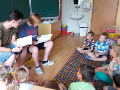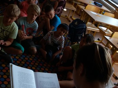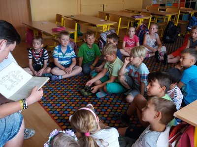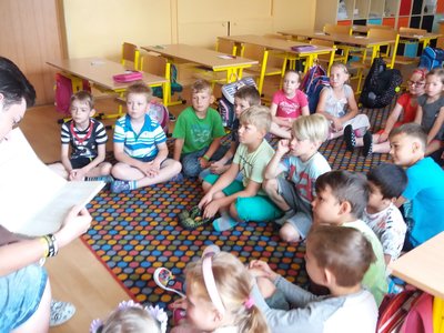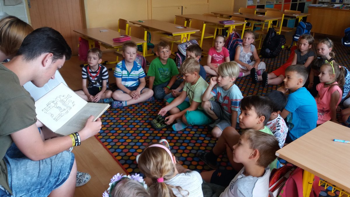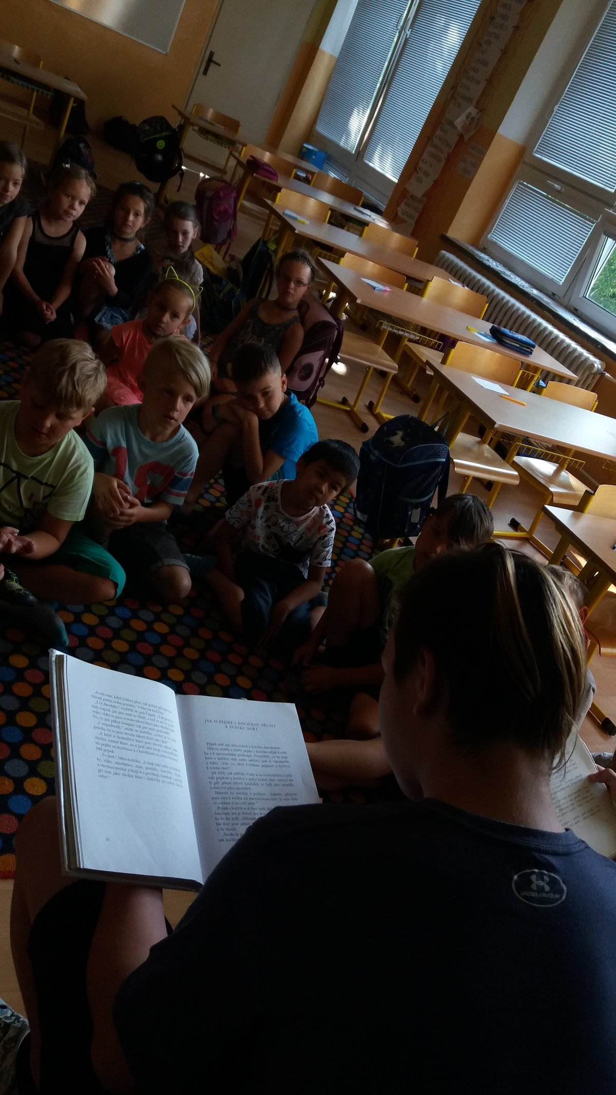 V rámci akce Celé česko čte dětem nám přišli do třídy předčítat Lukáš a Vašek z 9.C. Poslechli jsme si příběh z knihy Povídání o pejskovi a kočičce. Děkujeme.