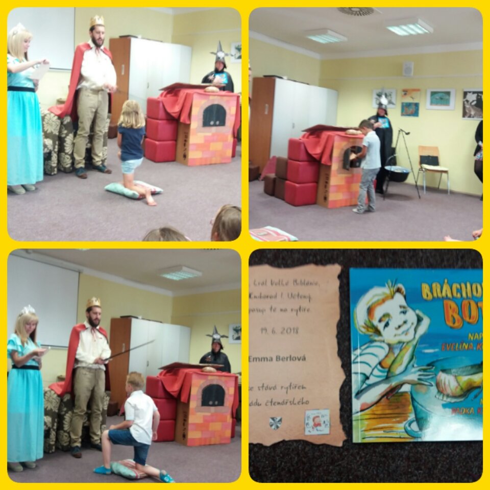 V úterý 19. června ukončily všechny 1. třídy celoroční projekt v městské knihovně pasováním rytířů z Řádu čtenářského na čtenáře. Na každé návštěvě měly děti pestrý program, seznamovaly se s knihami, výpůjčním řádem, plnily různé úkoly. Při pasování je čekala pohádka, samotné pasování na čtenáře i odměna za celý rok – samozřejmě kniha. Děti hodnotily akci: „Úžasná!“, „Zábavná!“, „ Hezká!“, „ Nádherná!“, „Krásná!“, „Napínavá!“, „Bezvadná!“