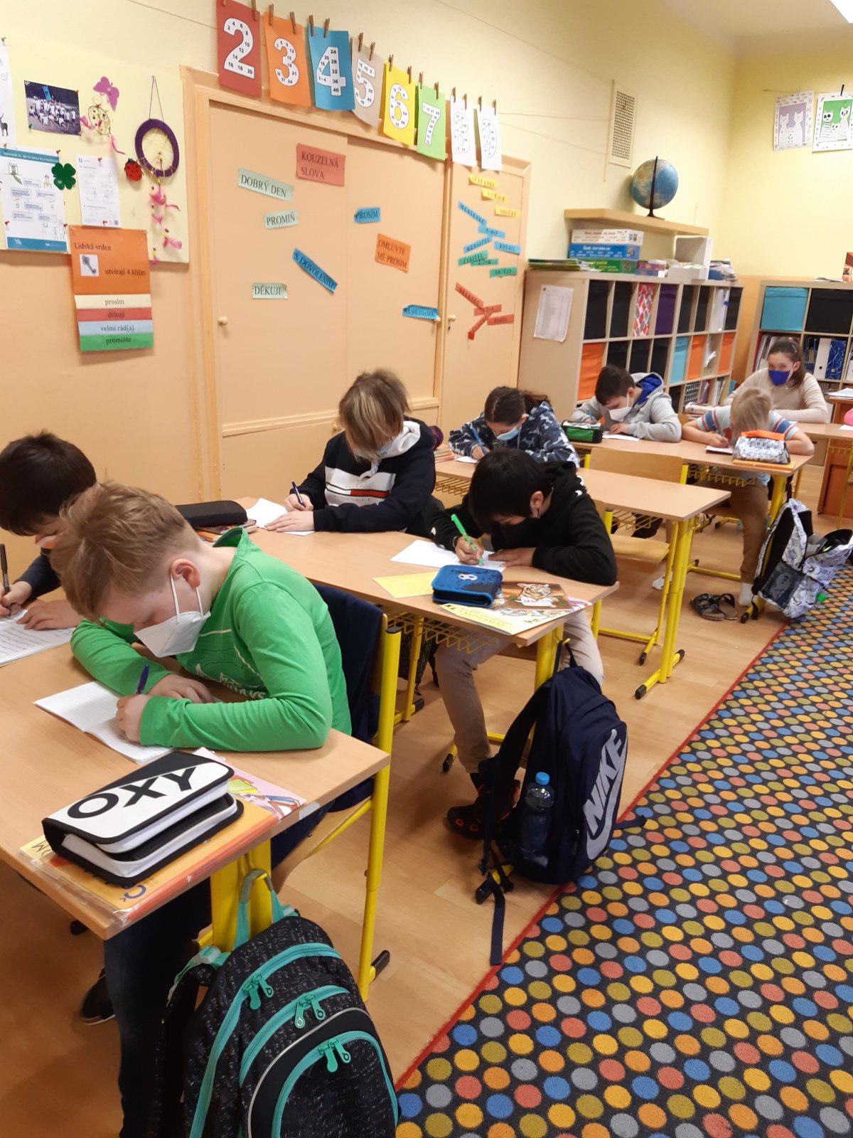 Celý týden jsme opakovali, procvičovali, zvykali si na práci ve škole. Šlo nám to různě. Stihli jsme si i jarně vyzdobit třídu.