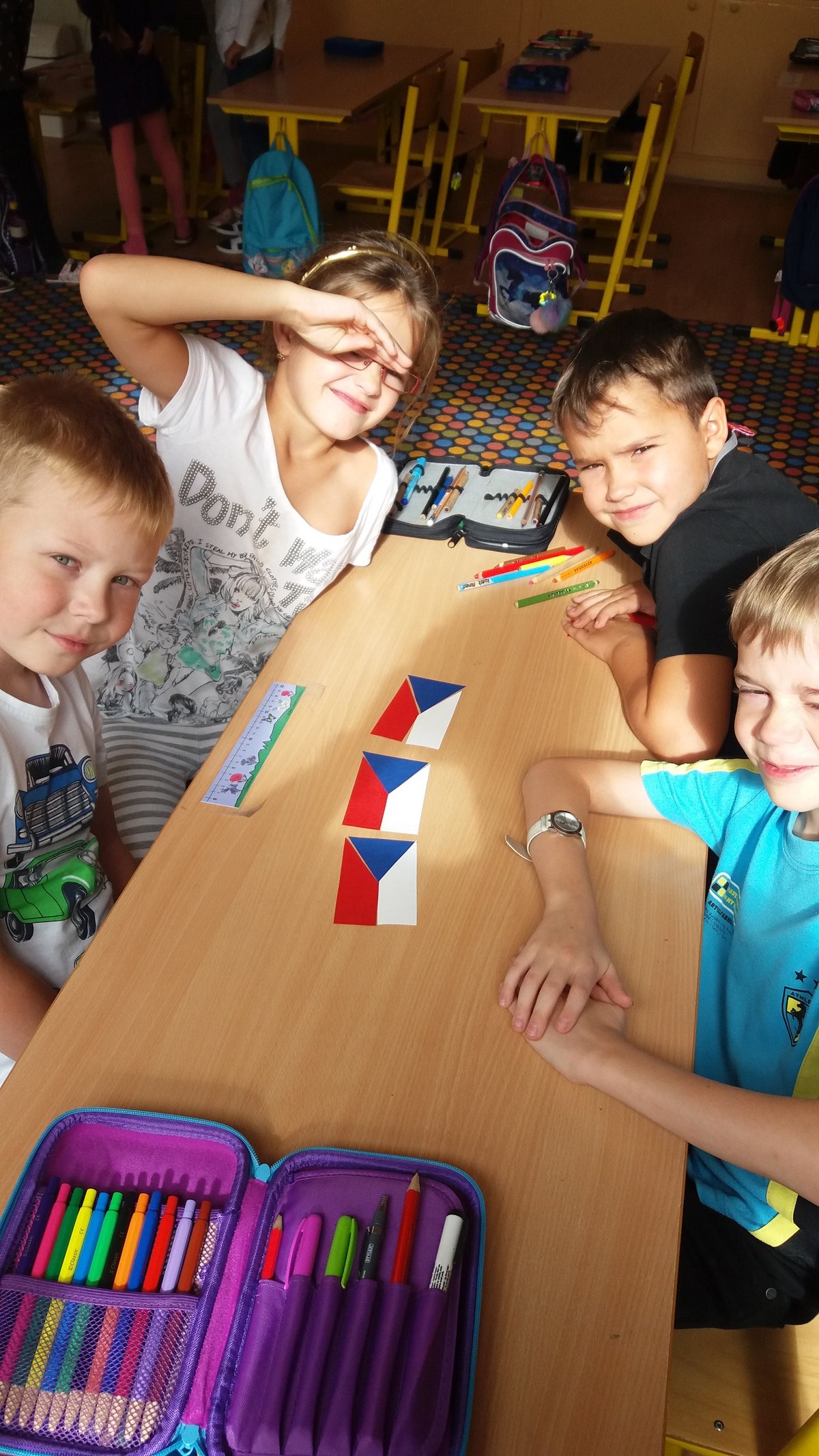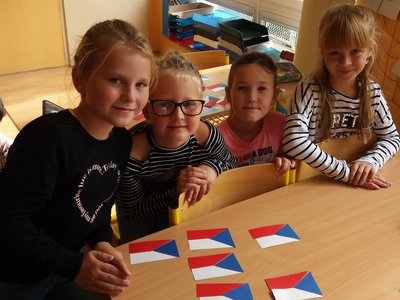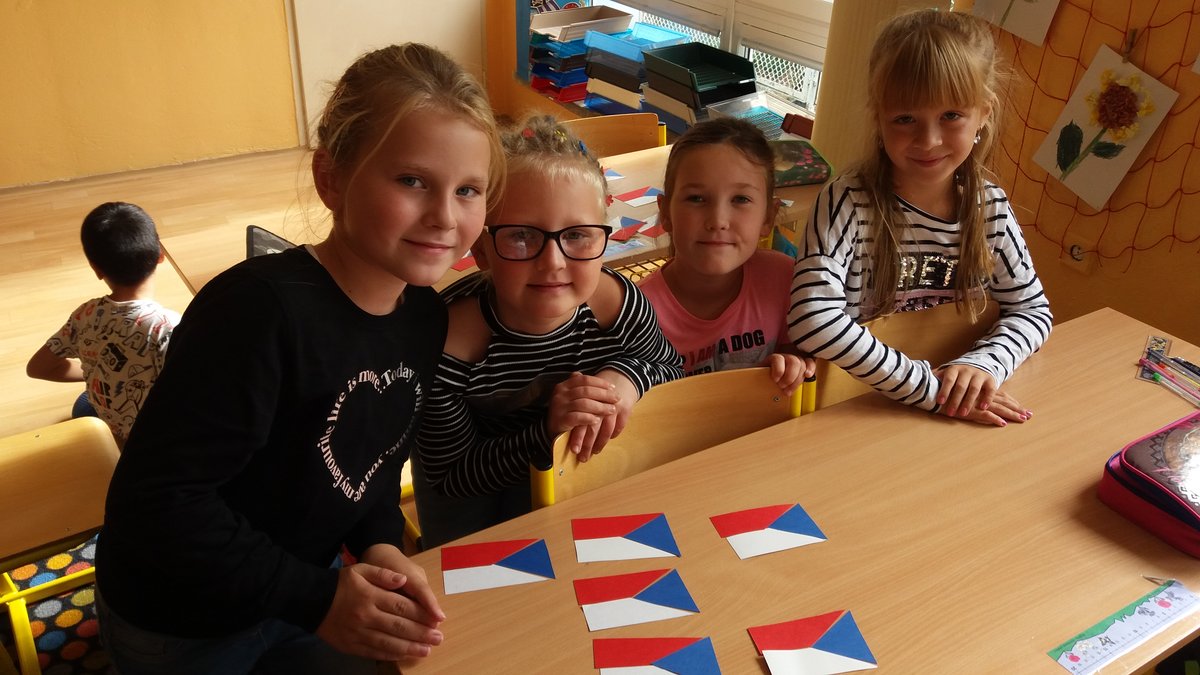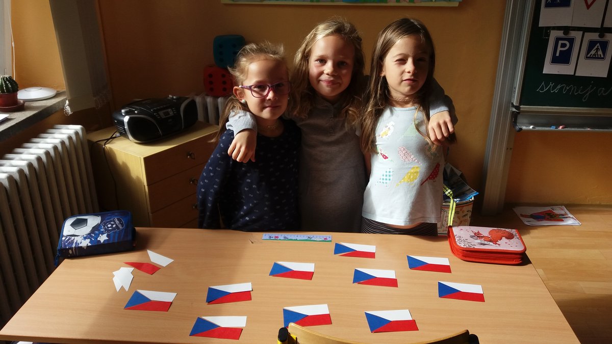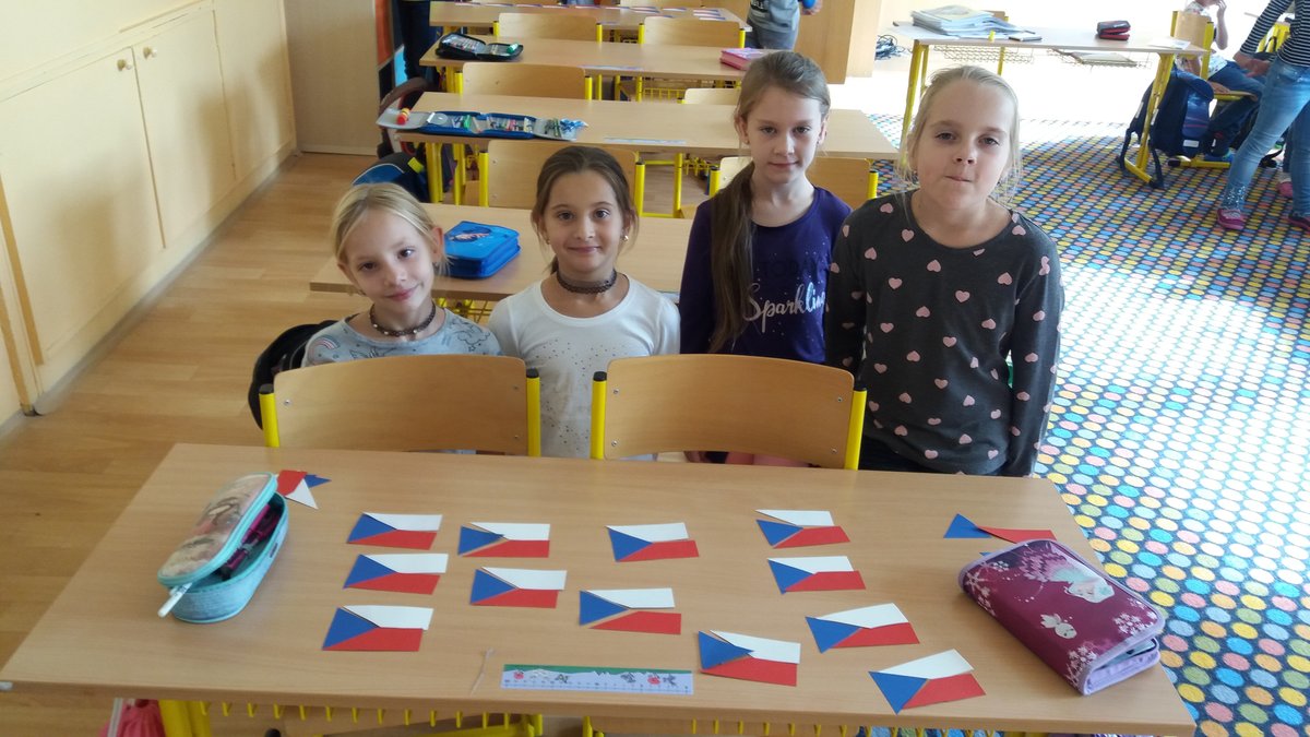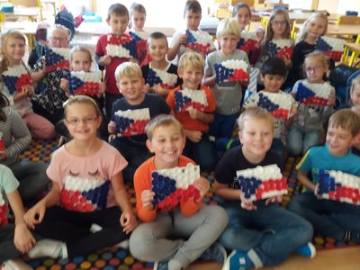 Nechali jste si doma vyprávět, co všechno se ve třídě dělo? Stihli jsme i oslavit Jiříkovy narozeniny. V hodině výtvarné výchovy jsme si dodělali vlajky ČR.