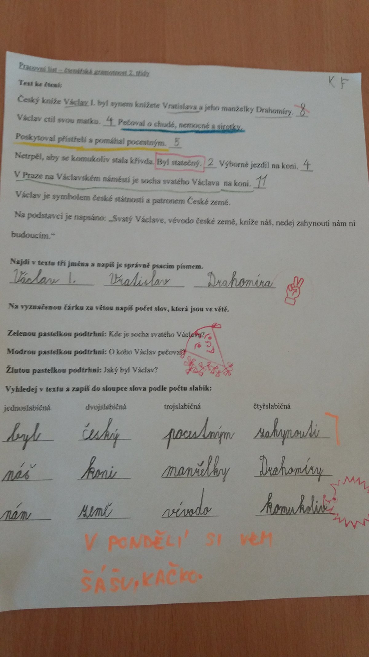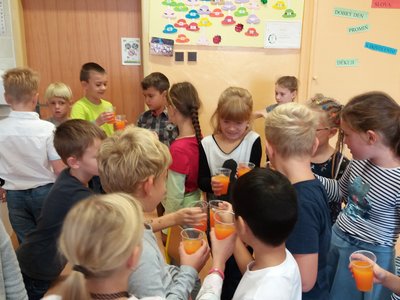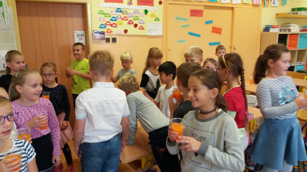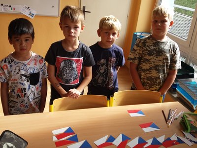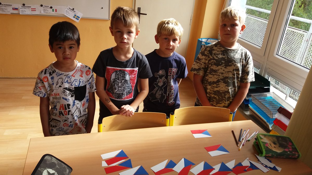 Nechali jste si doma vyprávět, co všechno se ve třídě dělo? Stihli jsme i oslavit Jiříkovy narozeniny. V hodině výtvarné výchovy jsme si dodělali vlajky ČR.