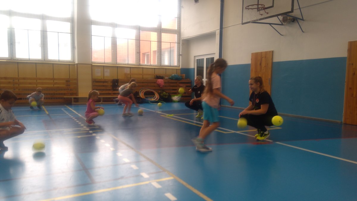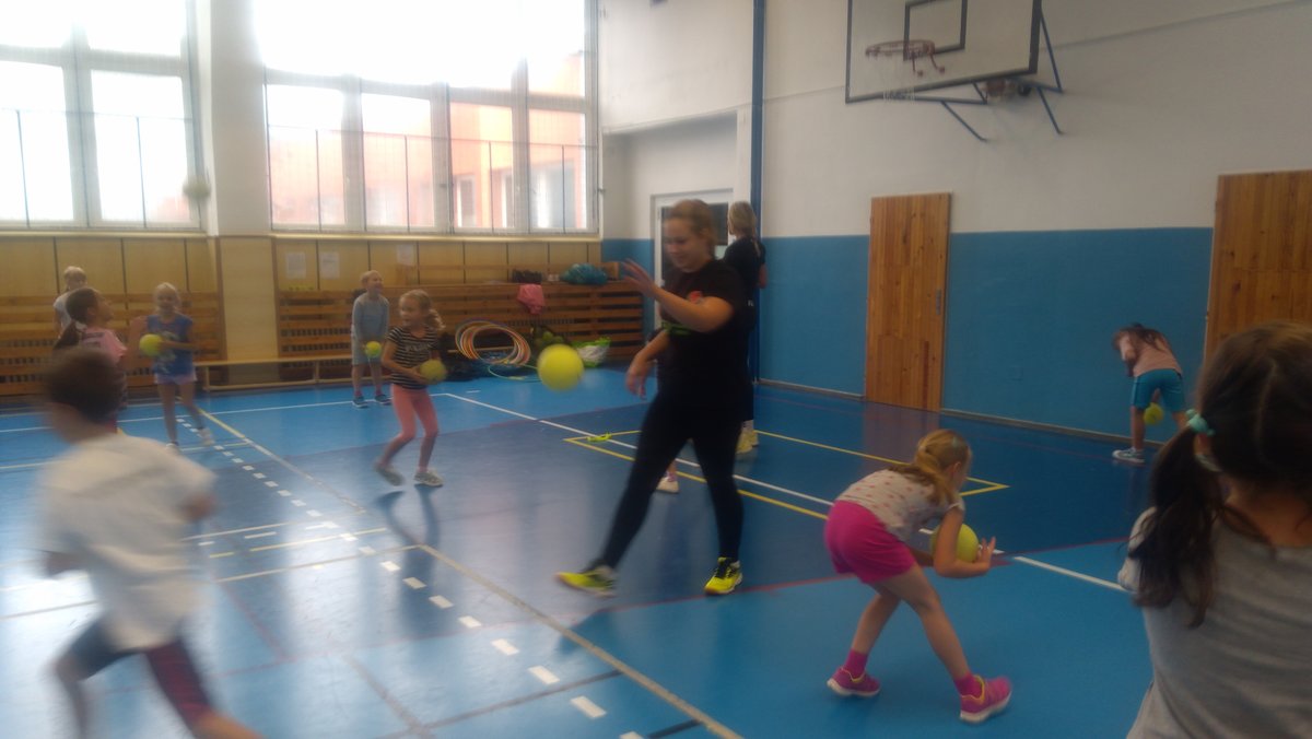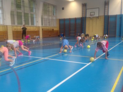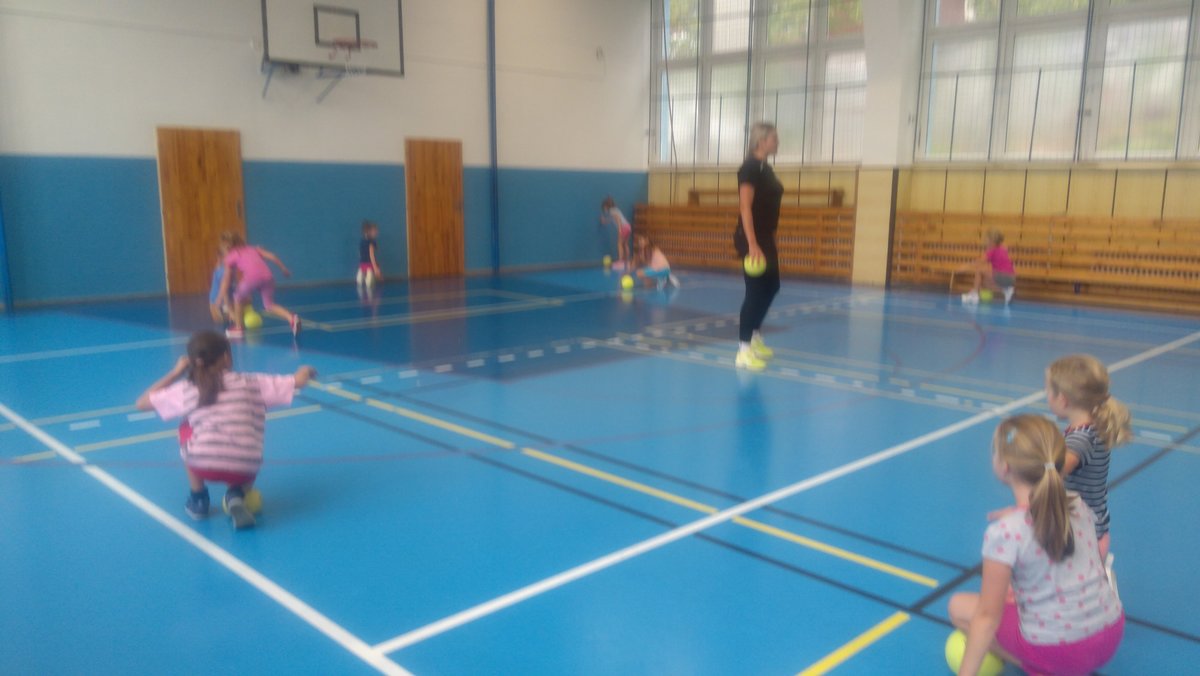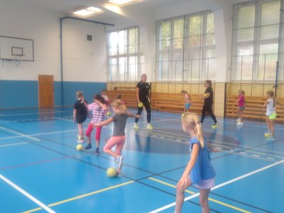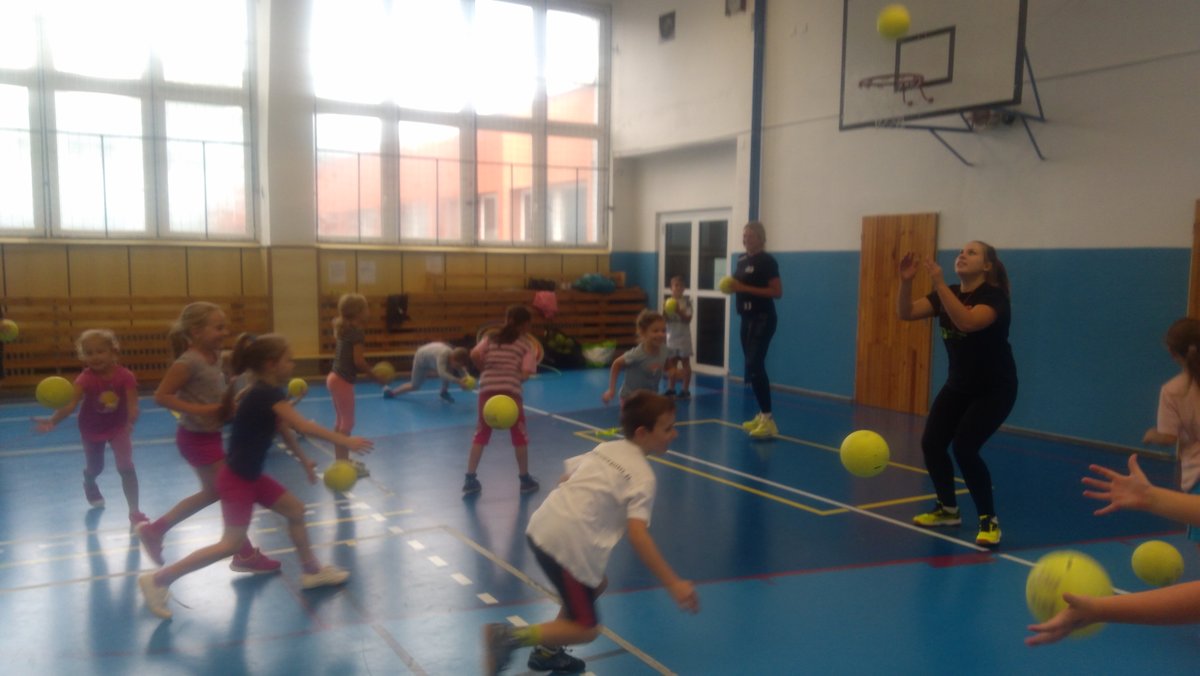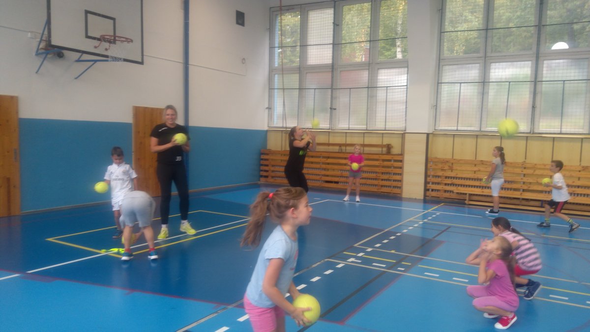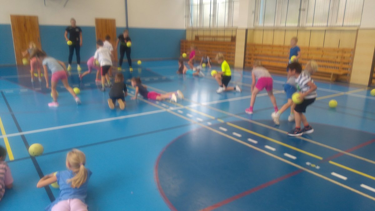 Do školy k nám dorazily trenérky z házenkářského oddílu Černých andělek v Mostě a ukázaly nám, jak se dá trénovat. Dvě spolužky Kačky v oddílu házené už trénují, ostatní se mohou přidat.