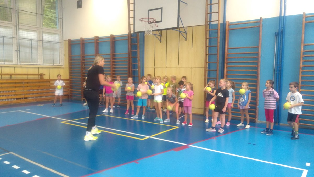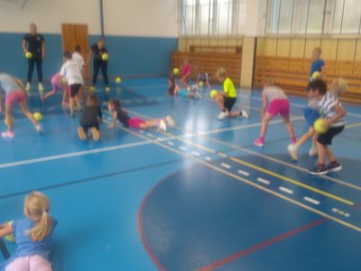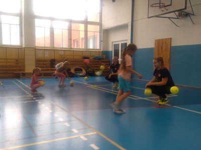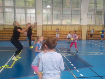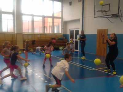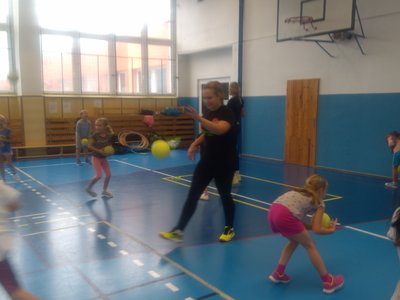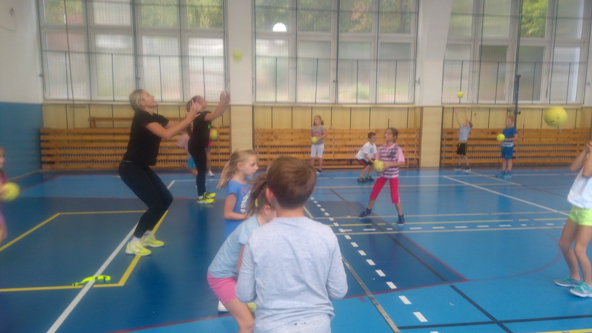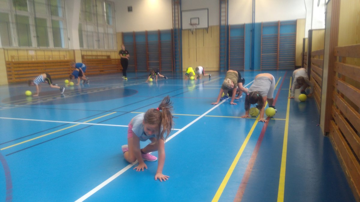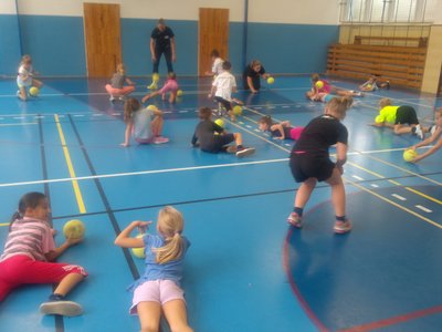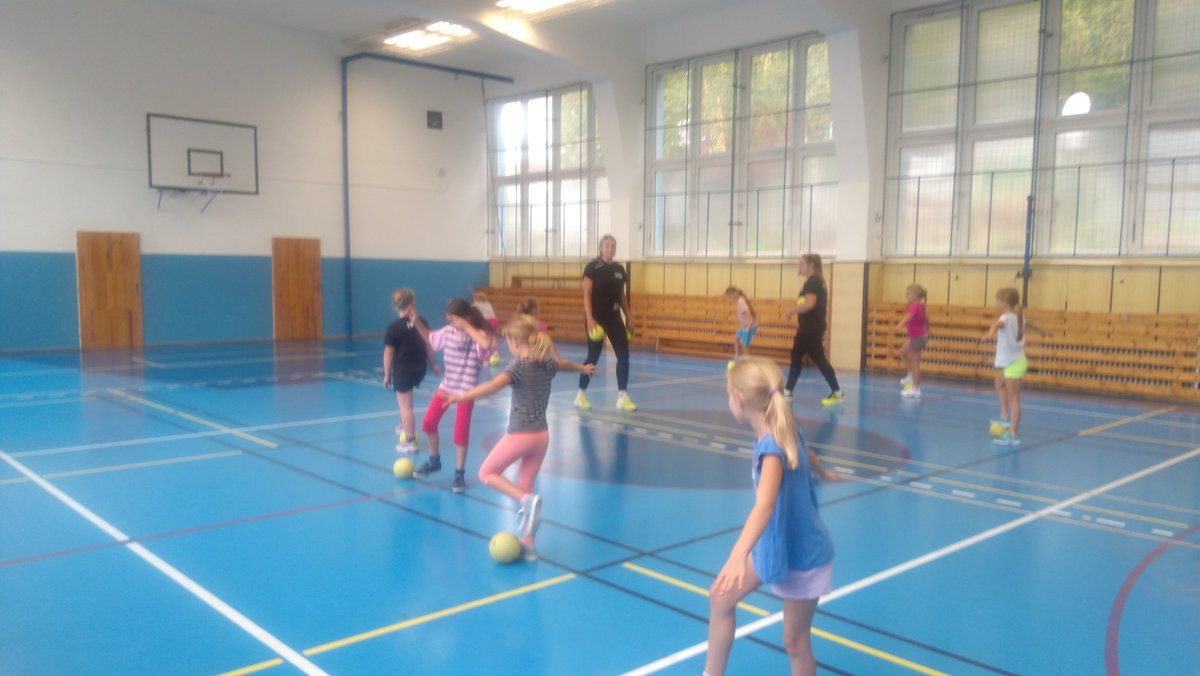 Do školy k nám dorazily trenérky z házenkářského oddílu Černých andělek v Mostě a ukázaly nám, jak se dá trénovat. Dvě spolužky Kačky v oddílu házené už trénují, ostatní se mohou přidat.