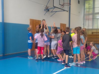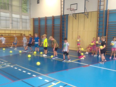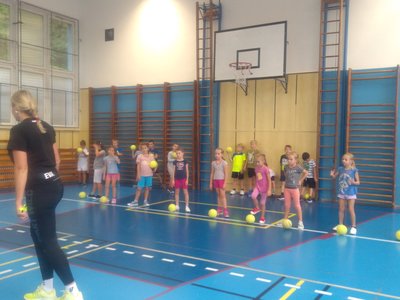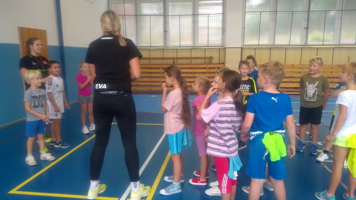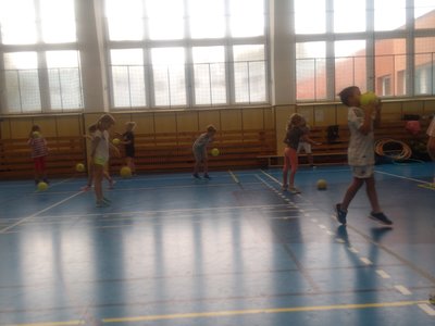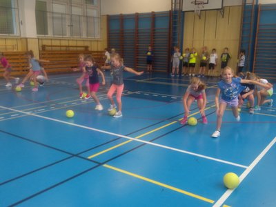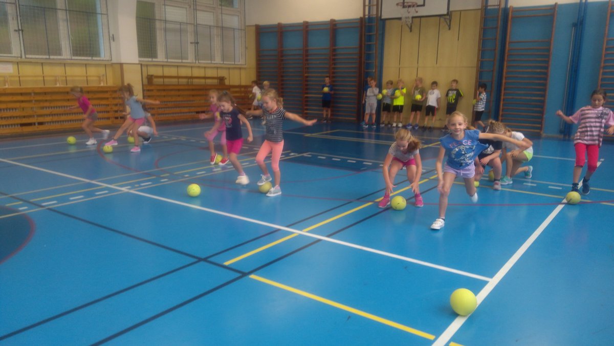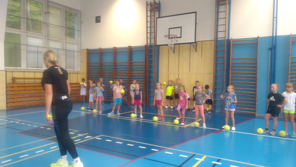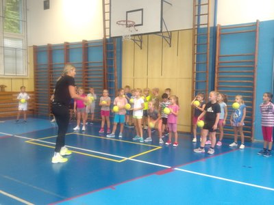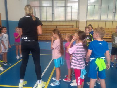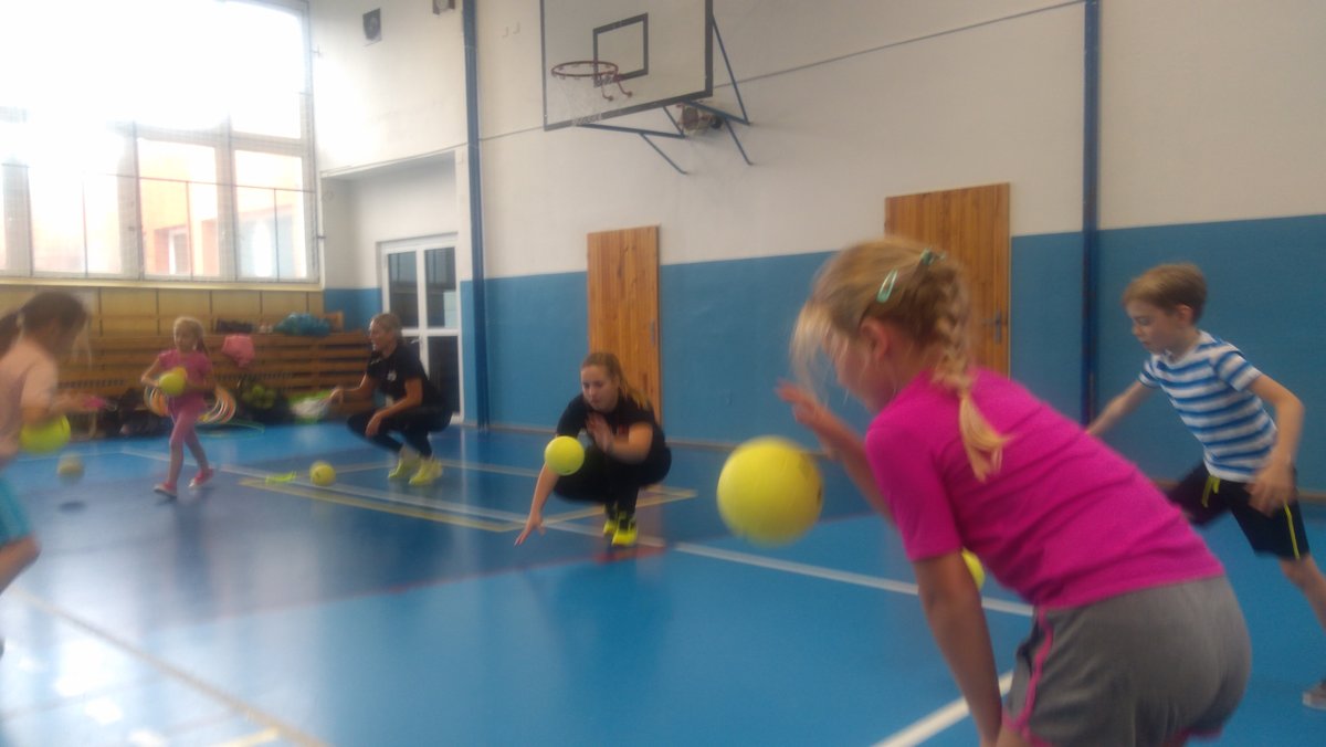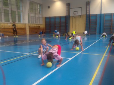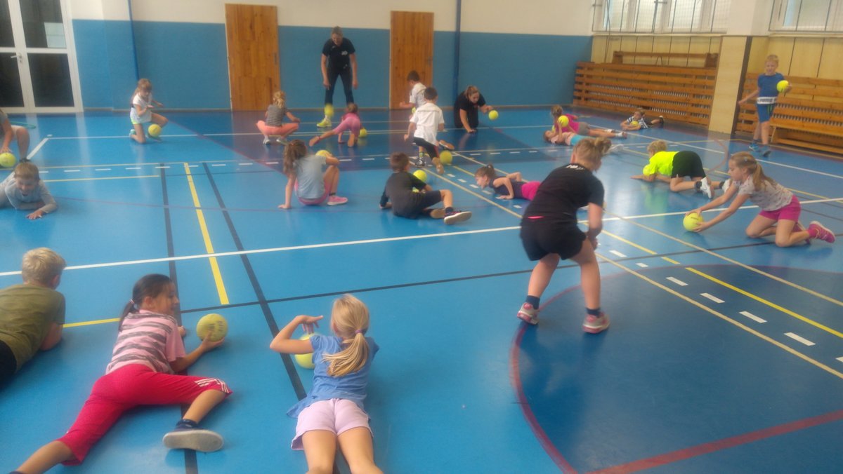 Do školy k nám dorazily trenérky z házenkářského oddílu Černých andělek v Mostě a ukázaly nám, jak se dá trénovat. Dvě spolužky Kačky v oddílu házené už trénují, ostatní se mohou přidat.