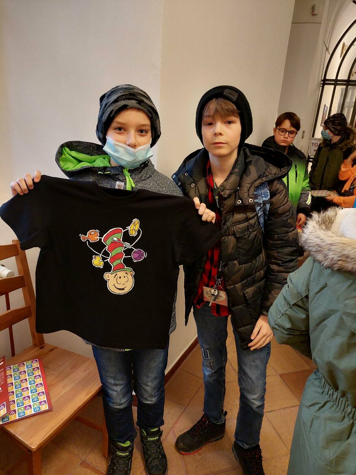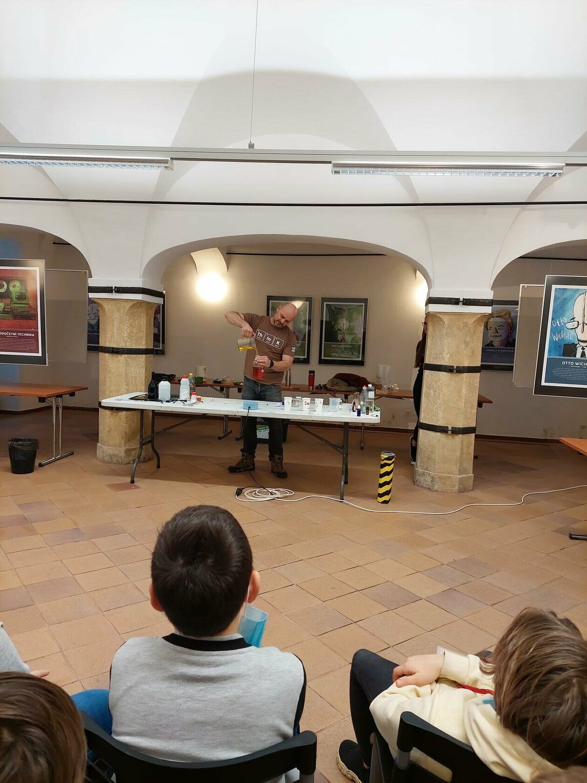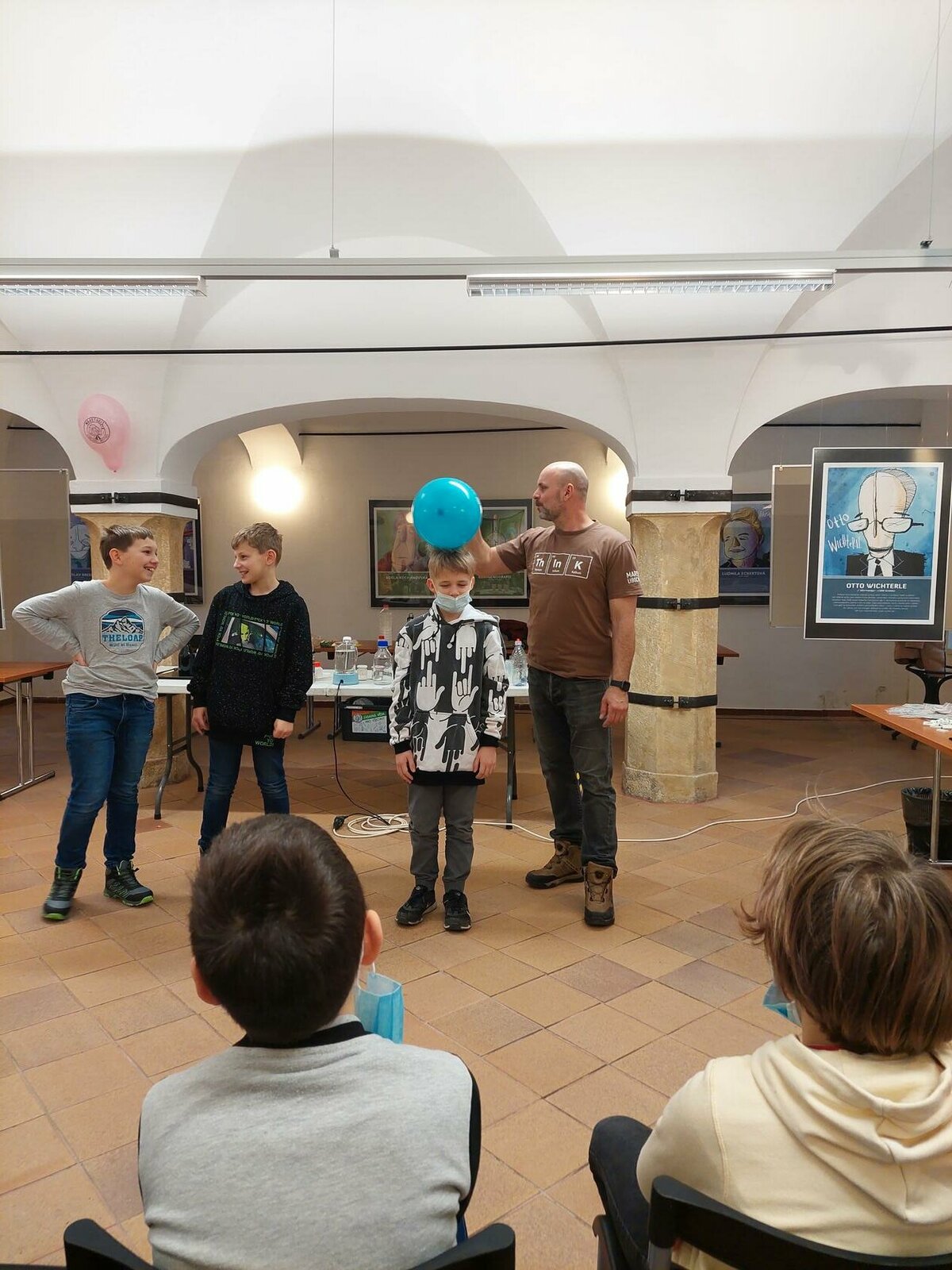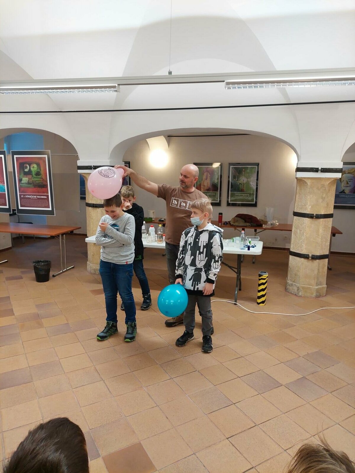 Chemie, pokusy? Slyšeli jsme zajímavé informace, máme nové zážitky, byli jsme nadšení. Neminuly nás ani drobnosti za odměnu. Robin s Lukášem jako nejlepší doplňovači informací získali triko. Děkujeme za zajímavý program.
